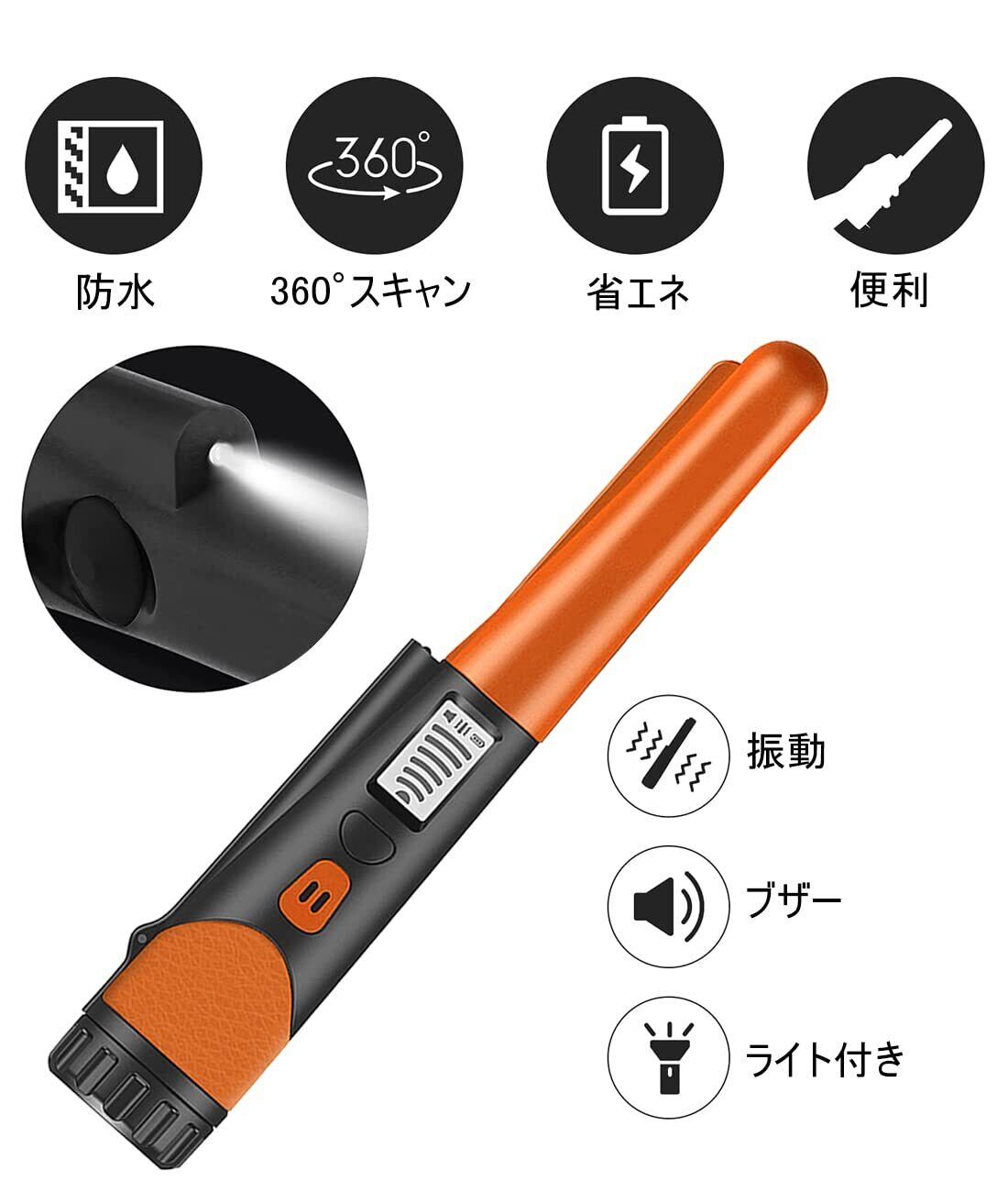 金属探知機 手持ち 高感度 防水 軽量 ゴールド検出器 高感度金属探知機 金属検出持ち物検査 簡単操作 最高の耐久性 最高感度範囲23cm 宝探し 持ち物検査 セキュリティ 地下金属探知機 高感度 下地探し 金属探知 簡単操作 持ち運び便利 (オレンジ)