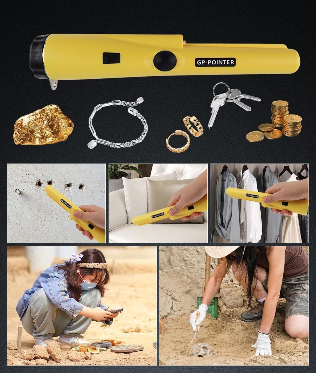 【あらゆる金属を探知可能】高感度金属探知機は迅速かつ精確に室内、室外、土に埋まったコイン、ジュエリ、レシバー、ゴールドなどの金属製ものを探知可能、紛失物探し、宝探しや埋蔵金探しなど様々なシーンに大活躍できます。