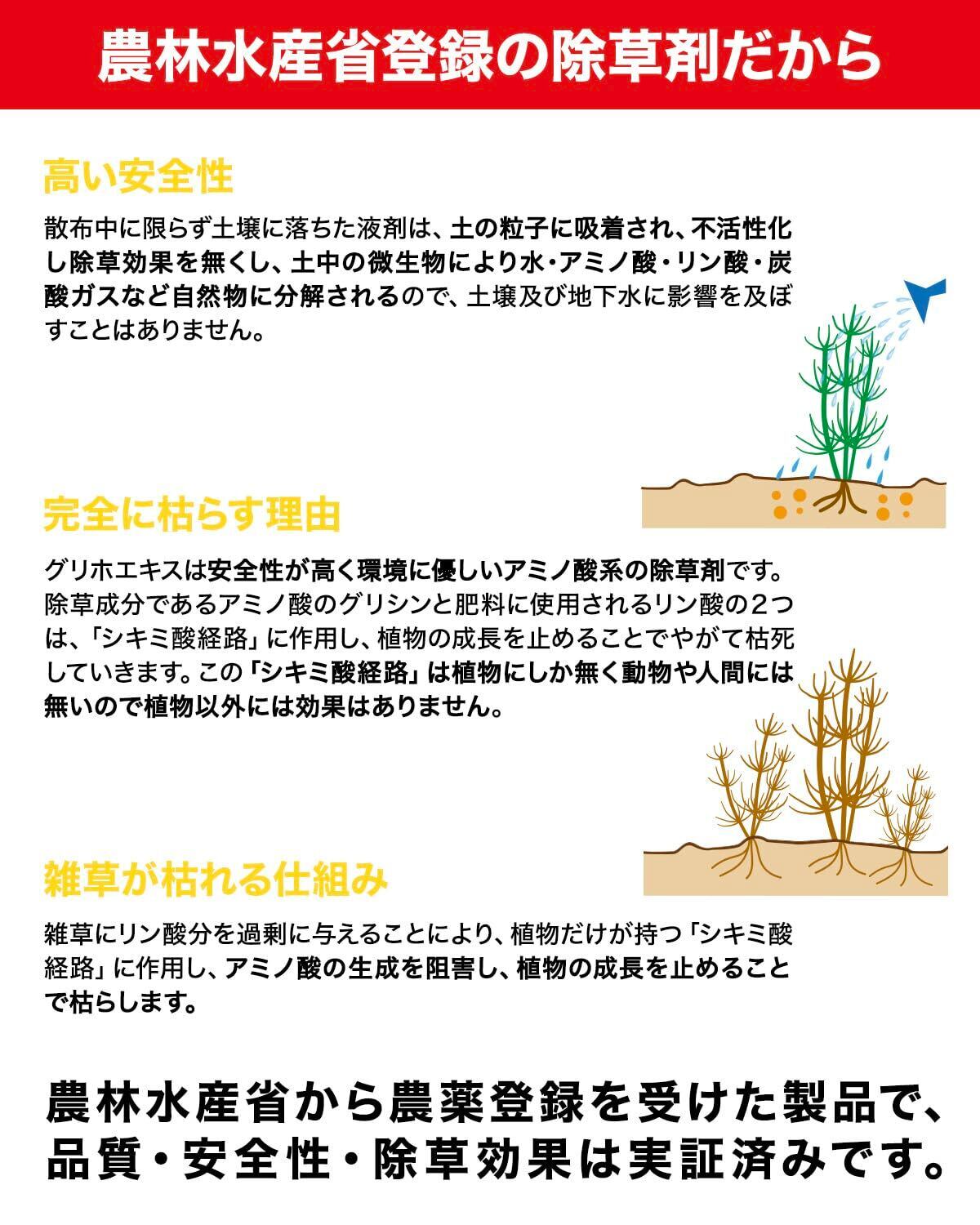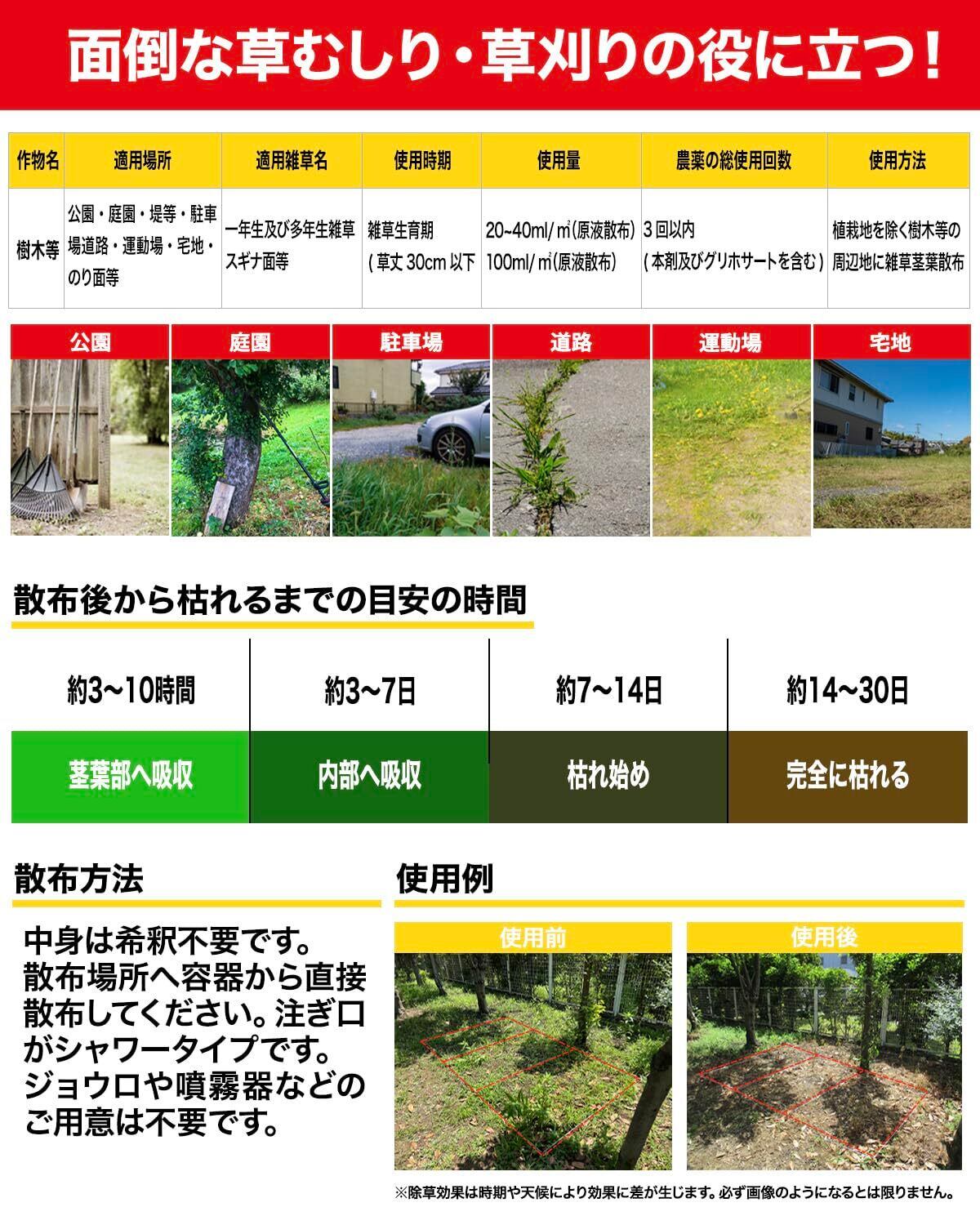 【非農耕地用、強力タイプの除草剤】雑草にかけるだけで、葉から浸透し、根まで枯らす強力な除草剤です。雑草対策はこれにお任せ!