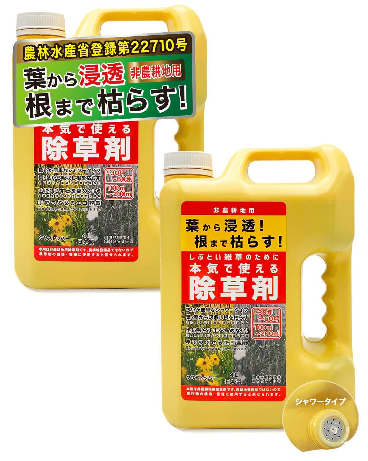 根まで枯らす 除草剤 非農耕地用 本体ボトル シャワータイプ 4L 2個セット