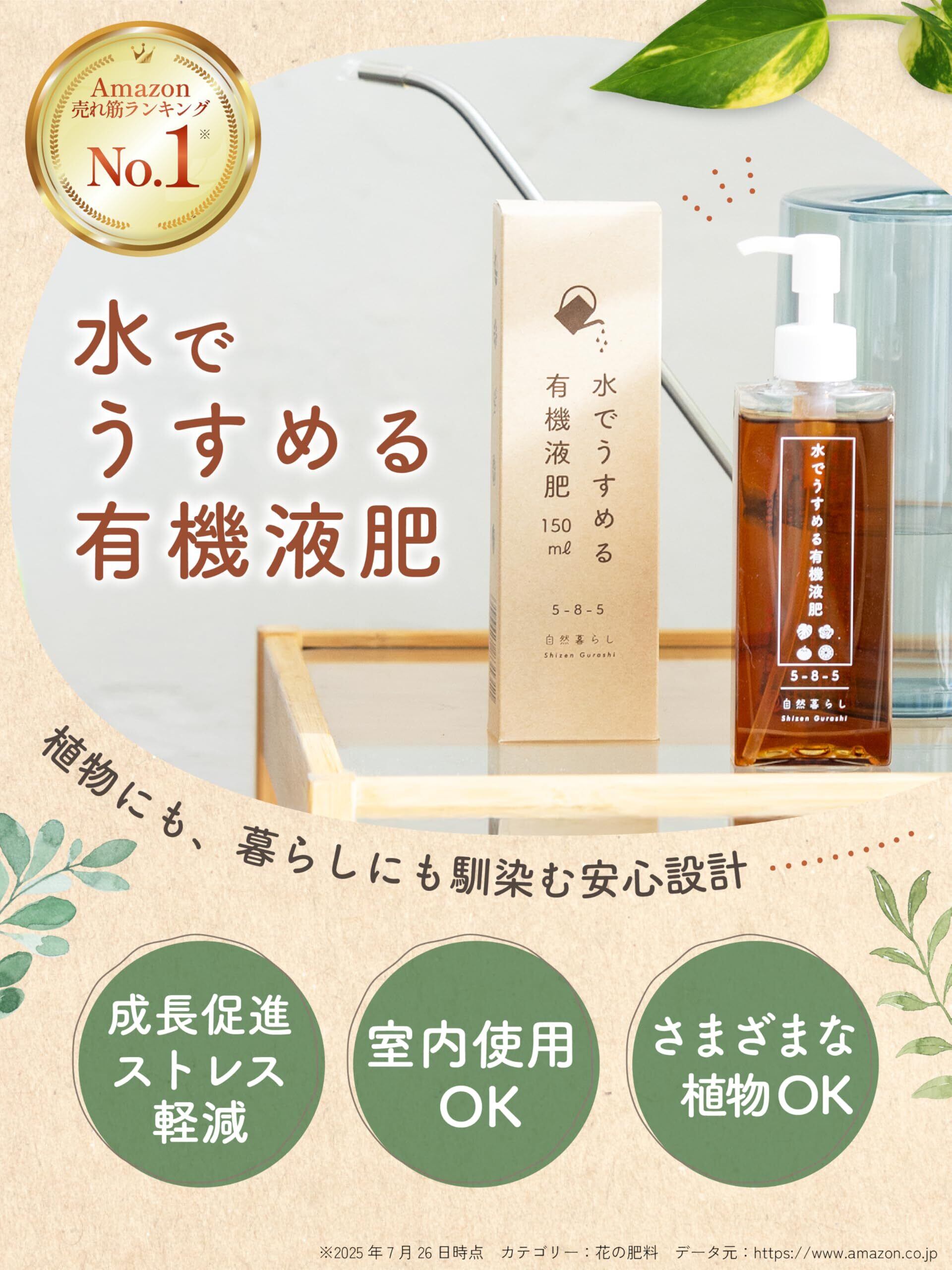 水でうすめる有機液肥 有機由来のアミノ酸&キレート鉄 自然暮らし (150 ml)草花 花木 果樹 芝 観葉植物 多肉植物 果菜 根菜 芋豆類 葉菜 ハーブ類など