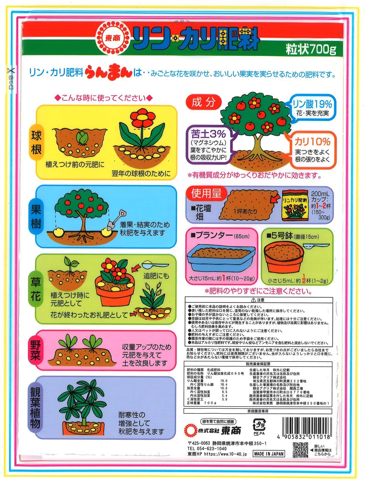 有機質由来のリン酸成分とカリが強化されているので花つき・実つきが良くなる肥料です。