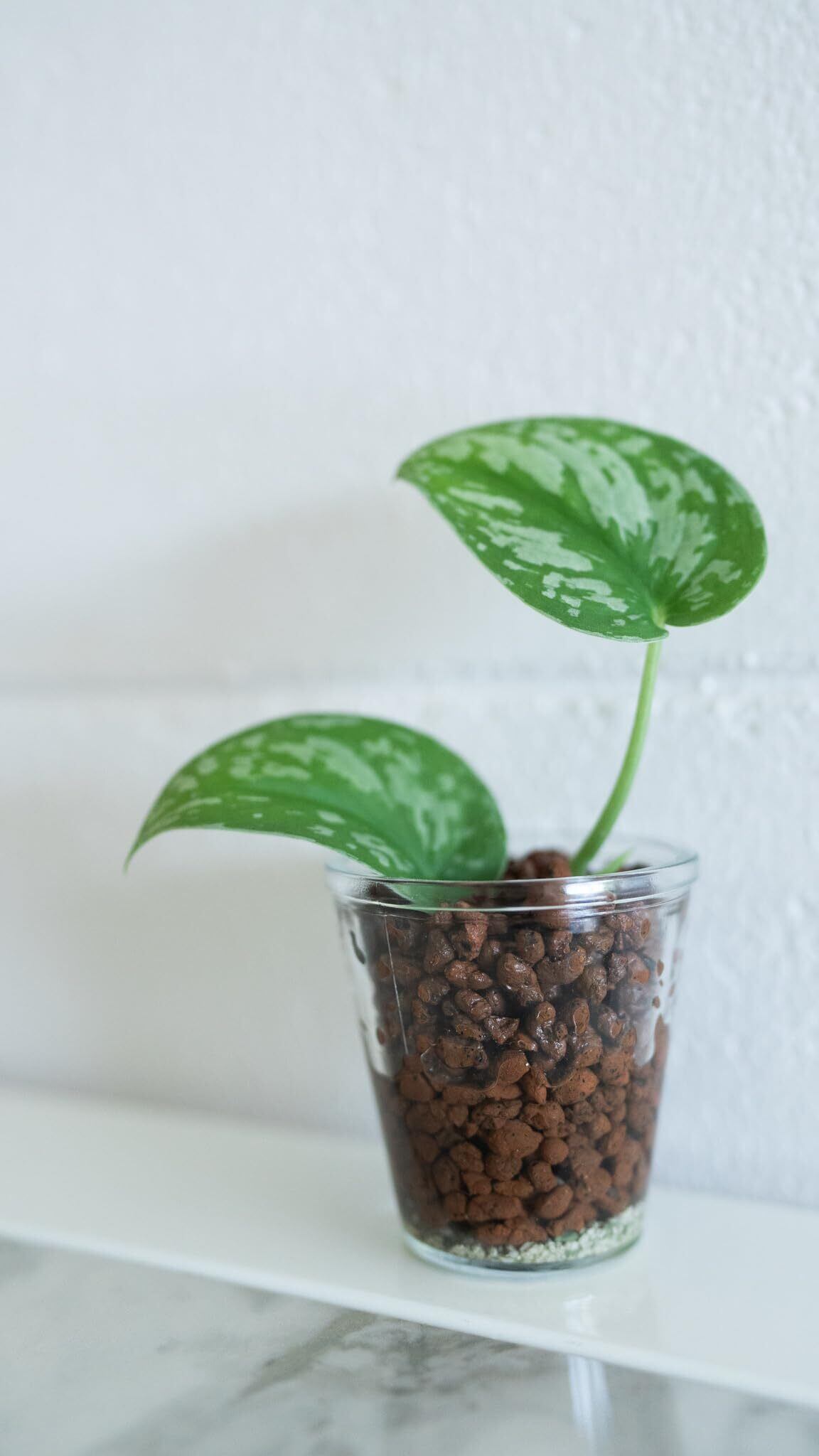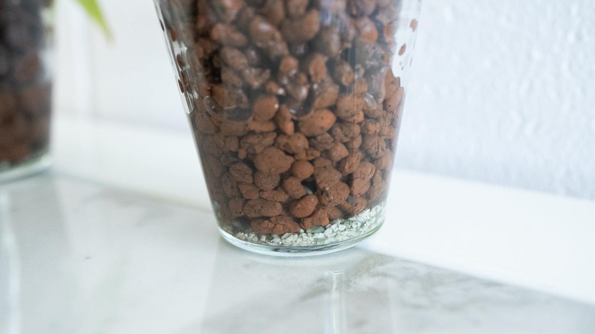 鉢底に少量いれるだけで、ガラス、 プラスチック、その他鉢穴のない容器に 栽培ですます ハイドロボールと共に使用し、 室内にみどりのアクセサリーを作りましょう 80gで2Lの容器に使えます