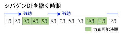 ●散布後6時間以内の降雨は効果が低下するので、天候を見きわめてから散布してください。