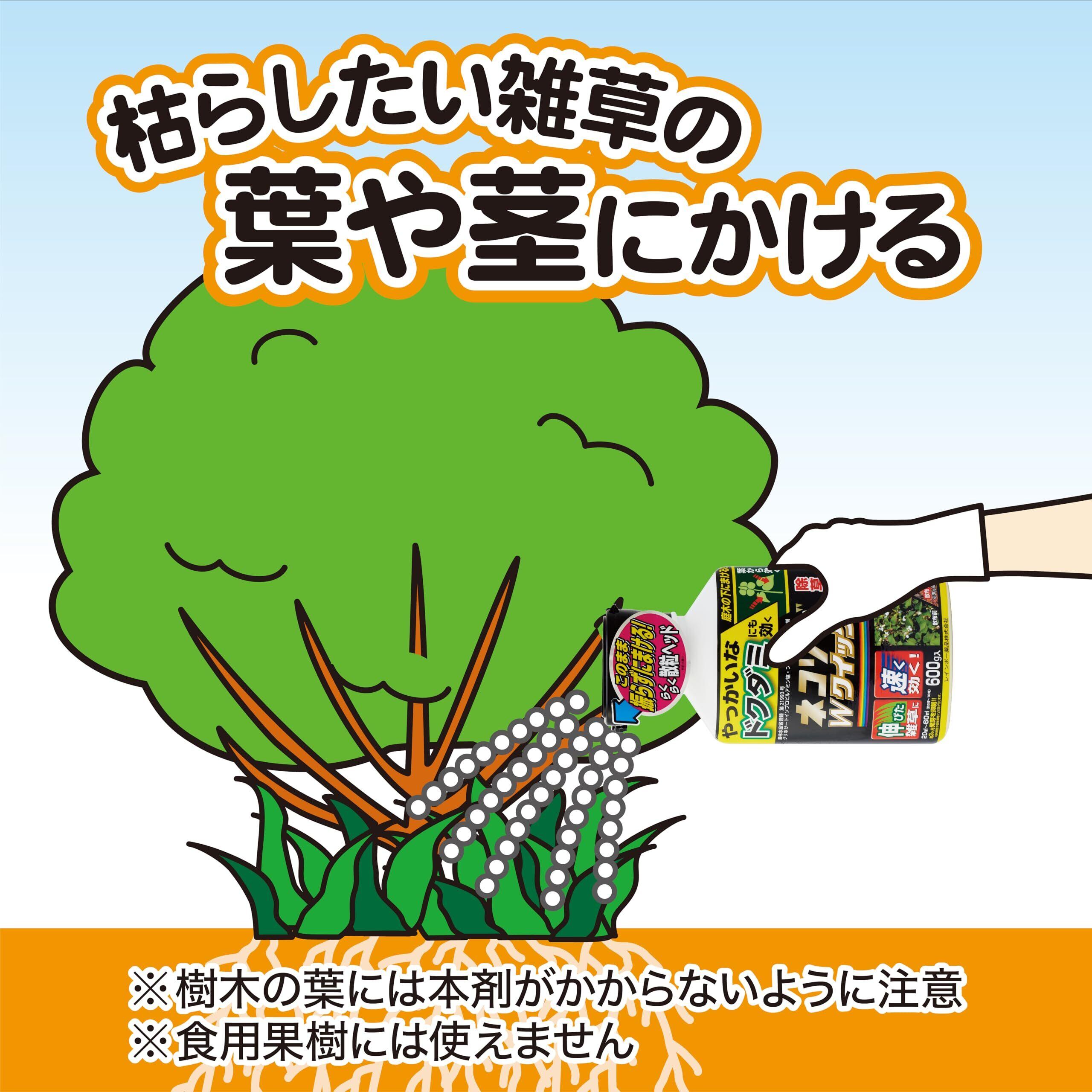 ・根からは吸収されない成分のため、庭木(食用果樹を除く)の下草除草にも使える