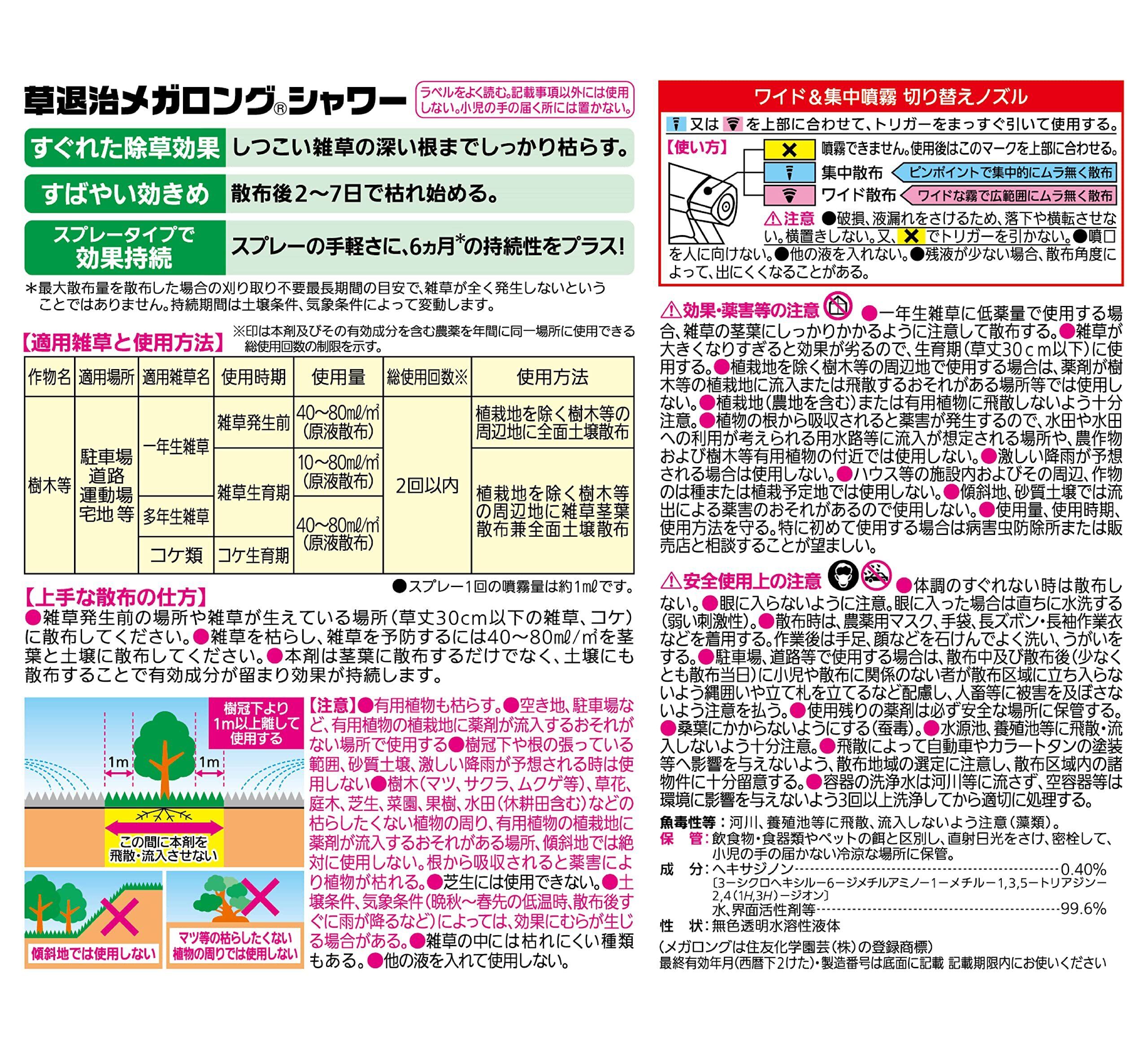 住友化学園芸 除草剤 草退治メガロングシャワー1000ml 強力 持続 最大散布100㎡ 液体