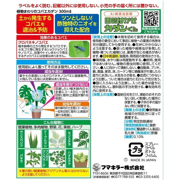 フマキラー コバエ用殺虫剤 植物まわりのコバエカダン 300ml 燻製酢のチカラで退治&予防