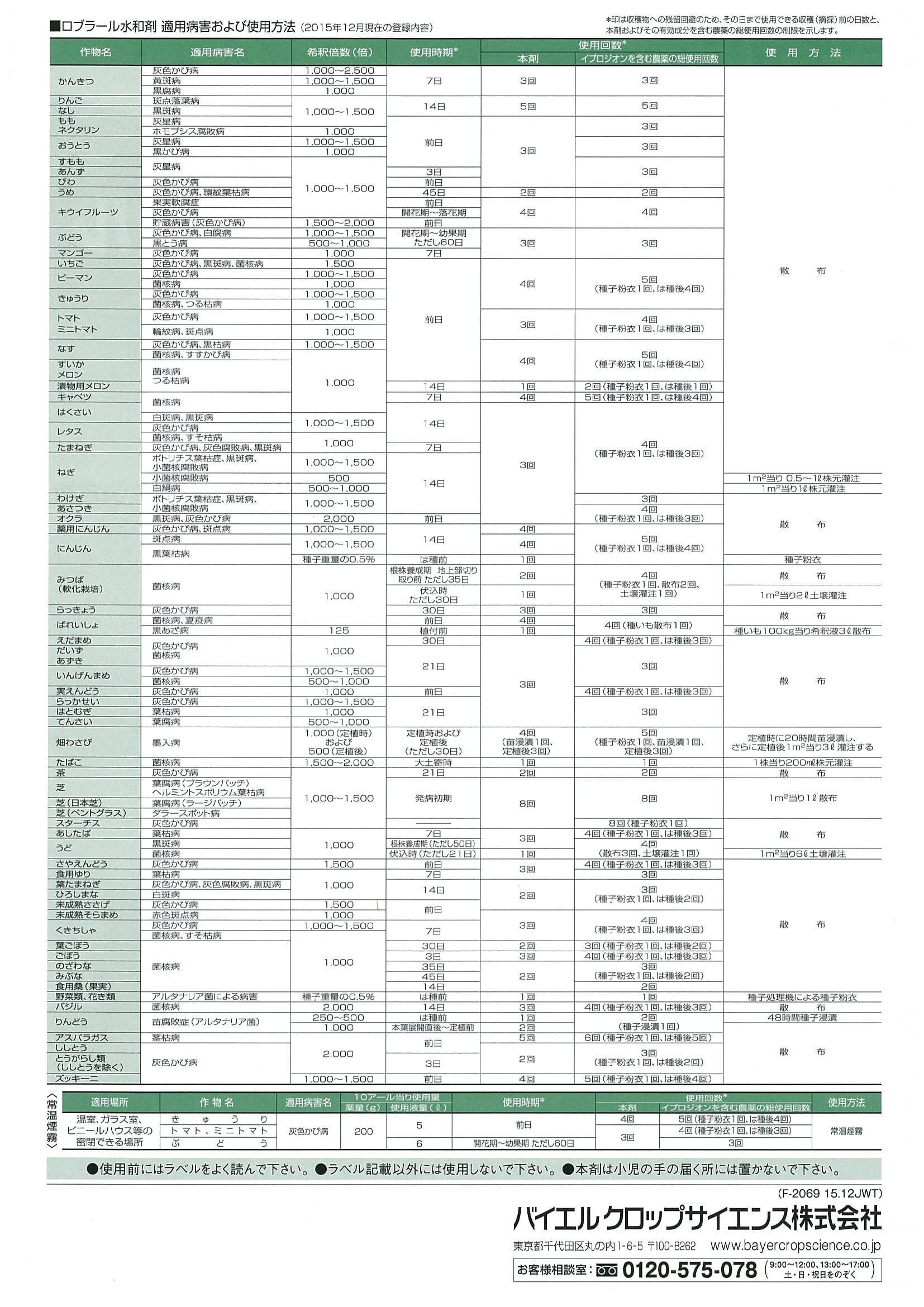 実際の使用にあたりましては、農薬の登録内容を必ずラベルでご確認ください。