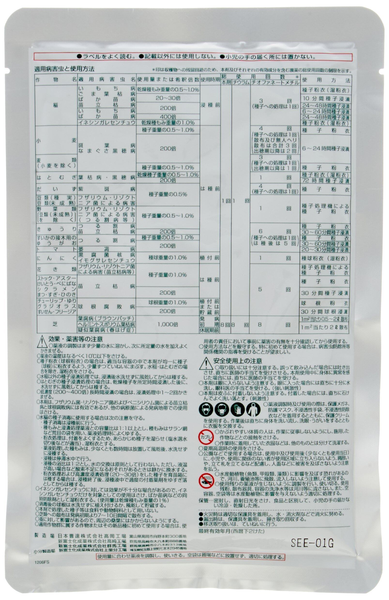 成分:チオファネートメチル・チウラム・二酸化ケイ素・その他の界面活性剤・鉱物質微粉等