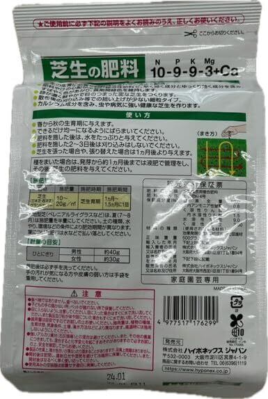 ハイポネックス 芝生の肥料 500g 虫や病気に強芝に 葉色を鮮やかに
