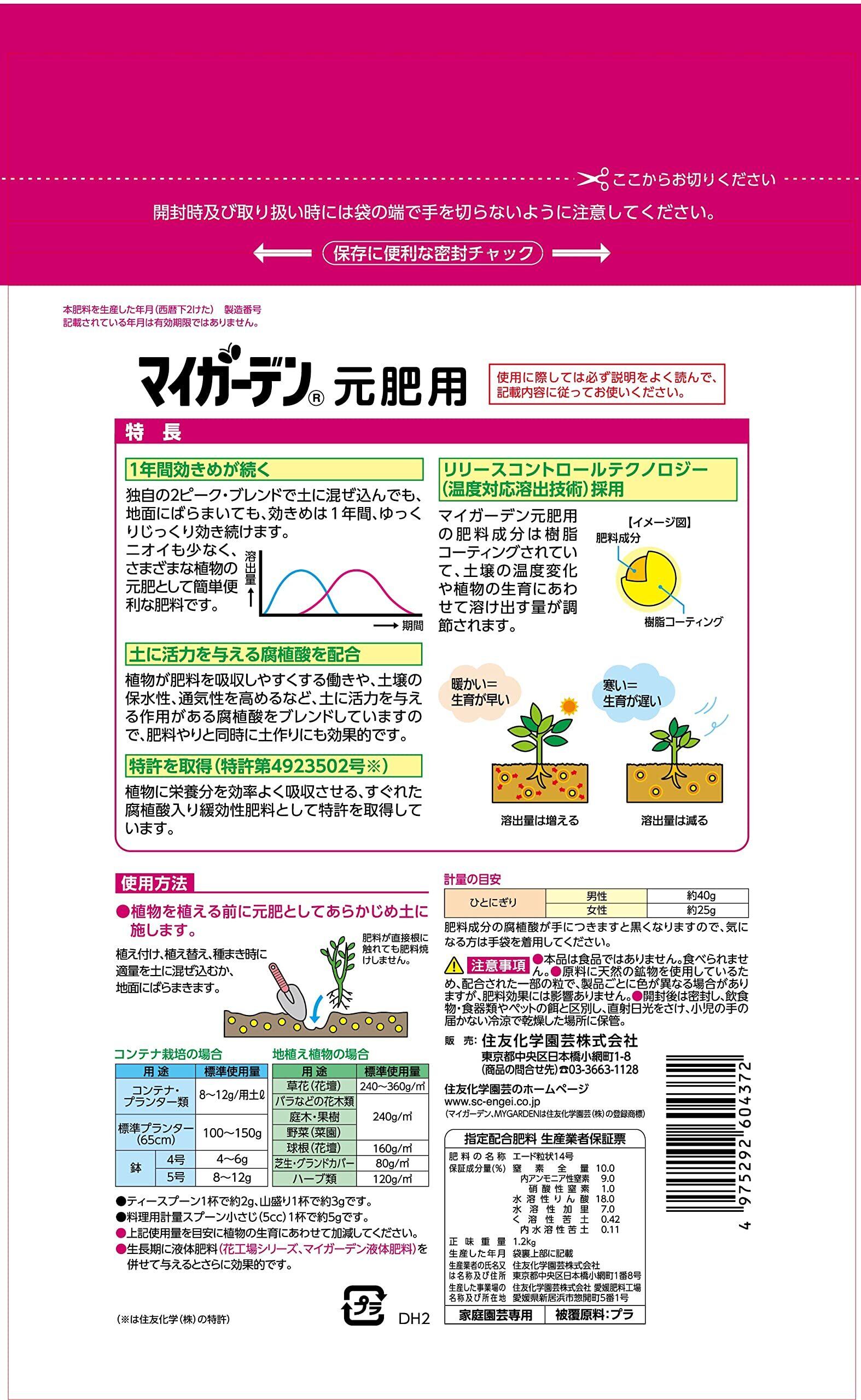 住友化学園芸 肥料 マイガーデン 元肥用 1.2kg 粒状 花 球根 元肥 効果1年間