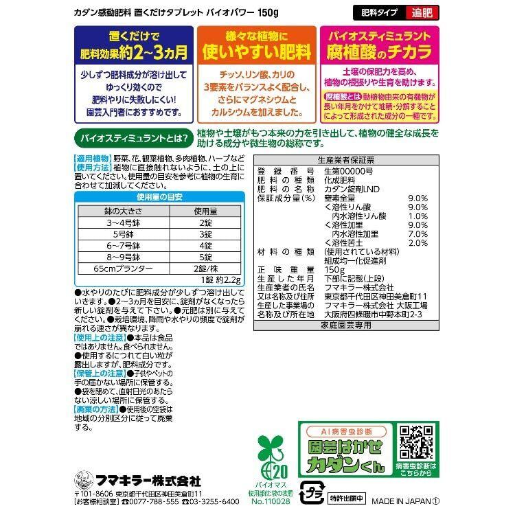 フマキラー 肥料 カダン感動肥料 置くだけタブレット バイオパワー 150g 根張り促進 土づくりもできる