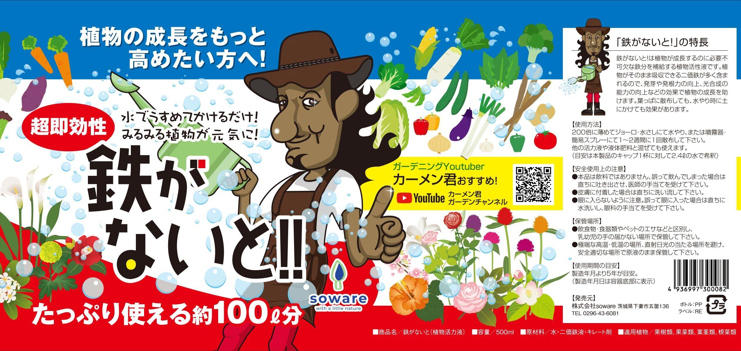 soware 植物活力剤 鉄がないと! 500ml 鉄分で植物を元気に育てる 発芽や発根力の向上効果