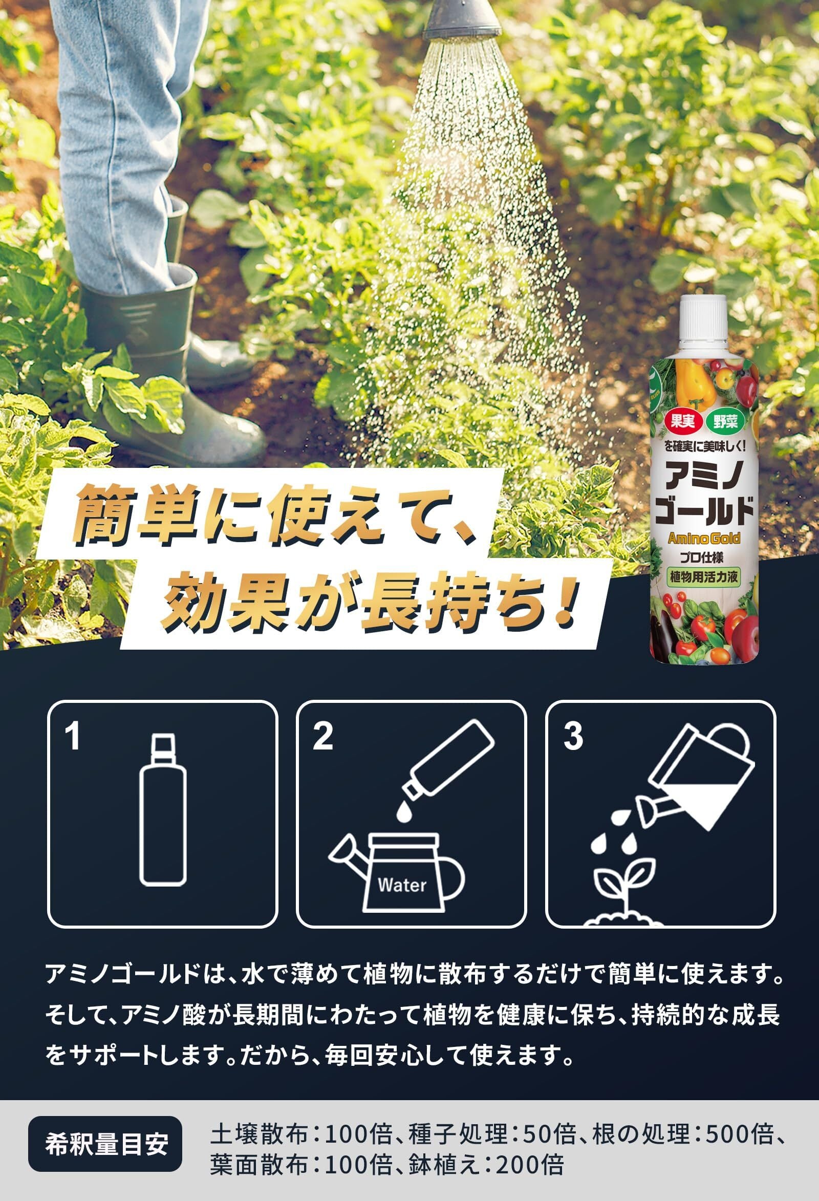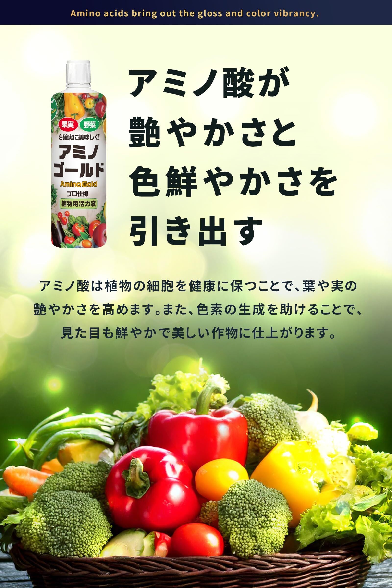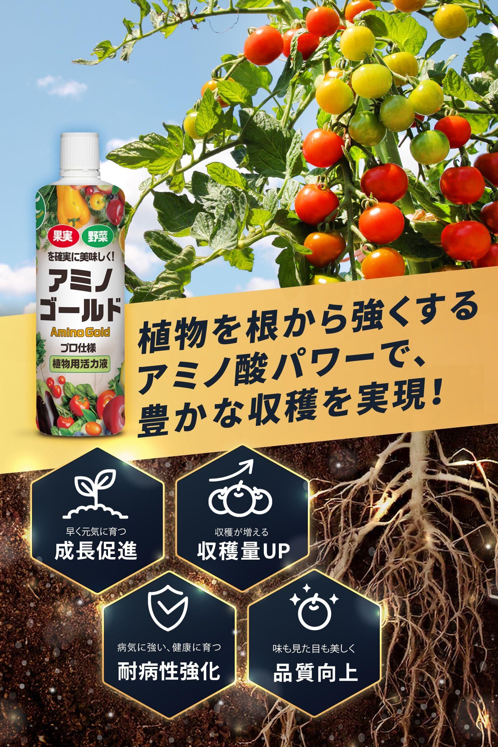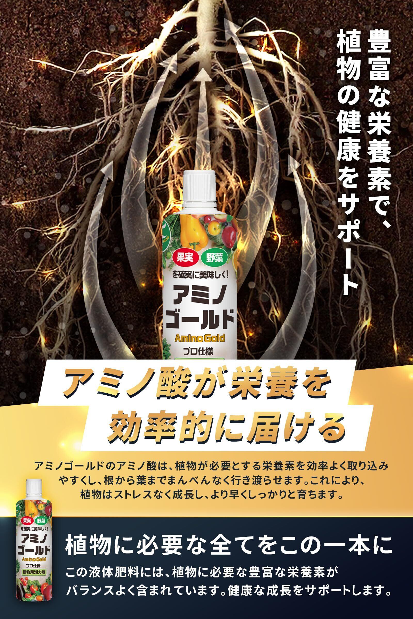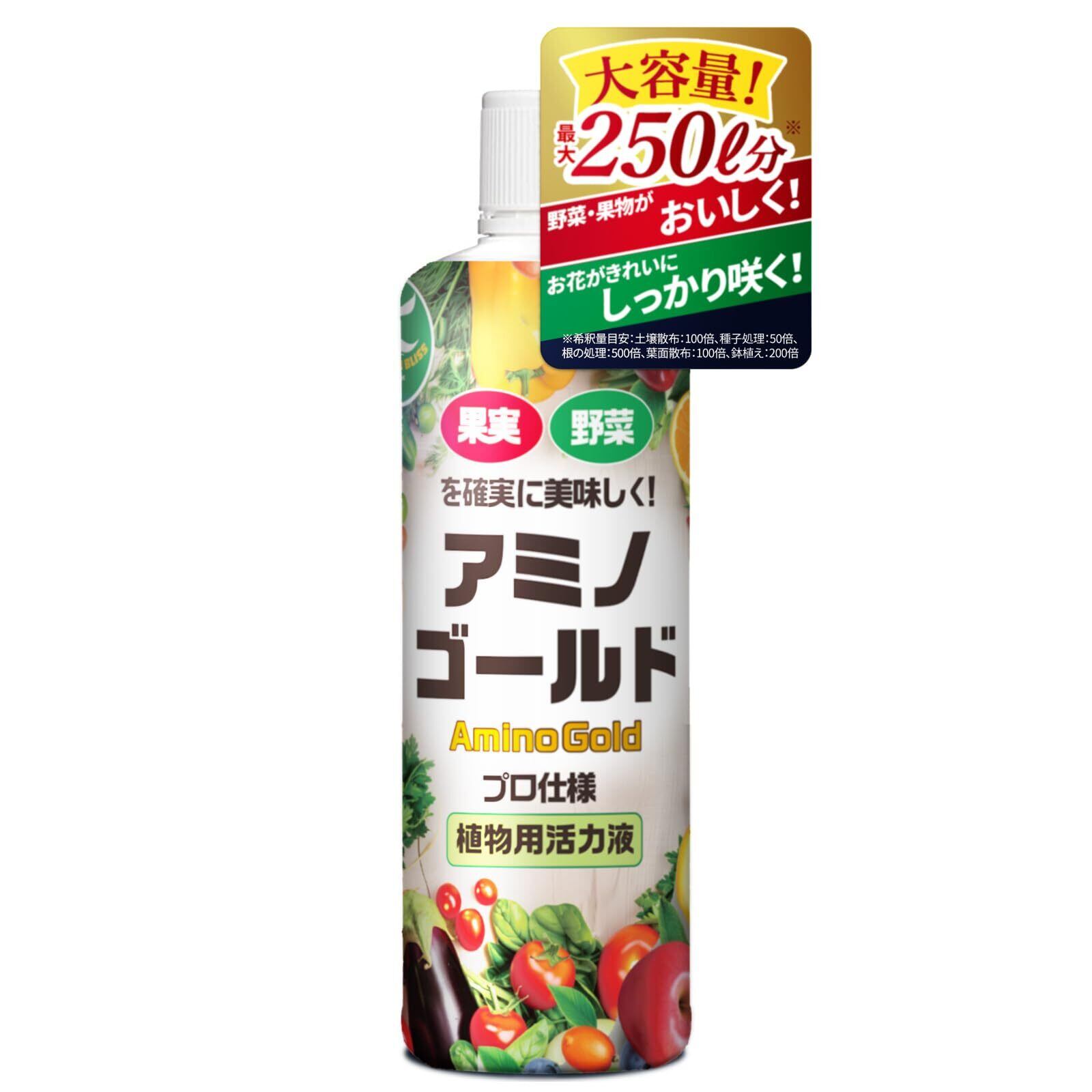 【酷暑でしおれてしまった植物に】 アミノゴールド 植物活力剤 栄養剤 野菜 果物 お花を丈夫に育てる アミノ酸 フルボ酸 原液 500ml