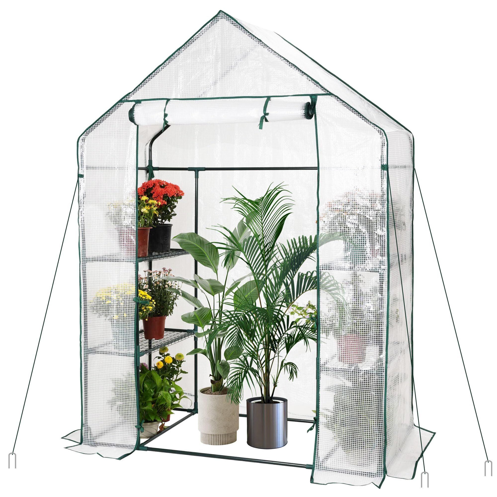 ビニールハウス 家庭用 ビニール温室 小型 家庭菜園 寒さ/霜/雨/風対策 温室 ビニール 虫/鳥よけ 家庭用ビニールハウス 窓/暖簾/ペグ付 チャック開閉 温室ハウス 工具不要 組立簡単 室内室外適用 多用途 (ホワイト, 143x73x195cm)