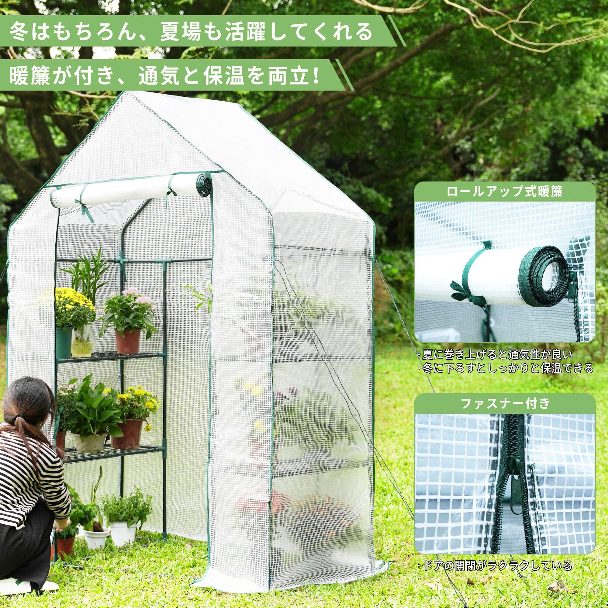 【通気と保温を両立させるドア付き】ドアはジッパー付きのロールアップ式で、開閉がラクラクしていて、作業に便利です。冬に窓とドアを下ろすとしっかりと保温できます。夏に巻き上げると通気性が良くて、便利なアクセスとシールドされた換気を提供し、最適な空気循環を実現します。冬はもちろん、夏場も活躍してくれます。