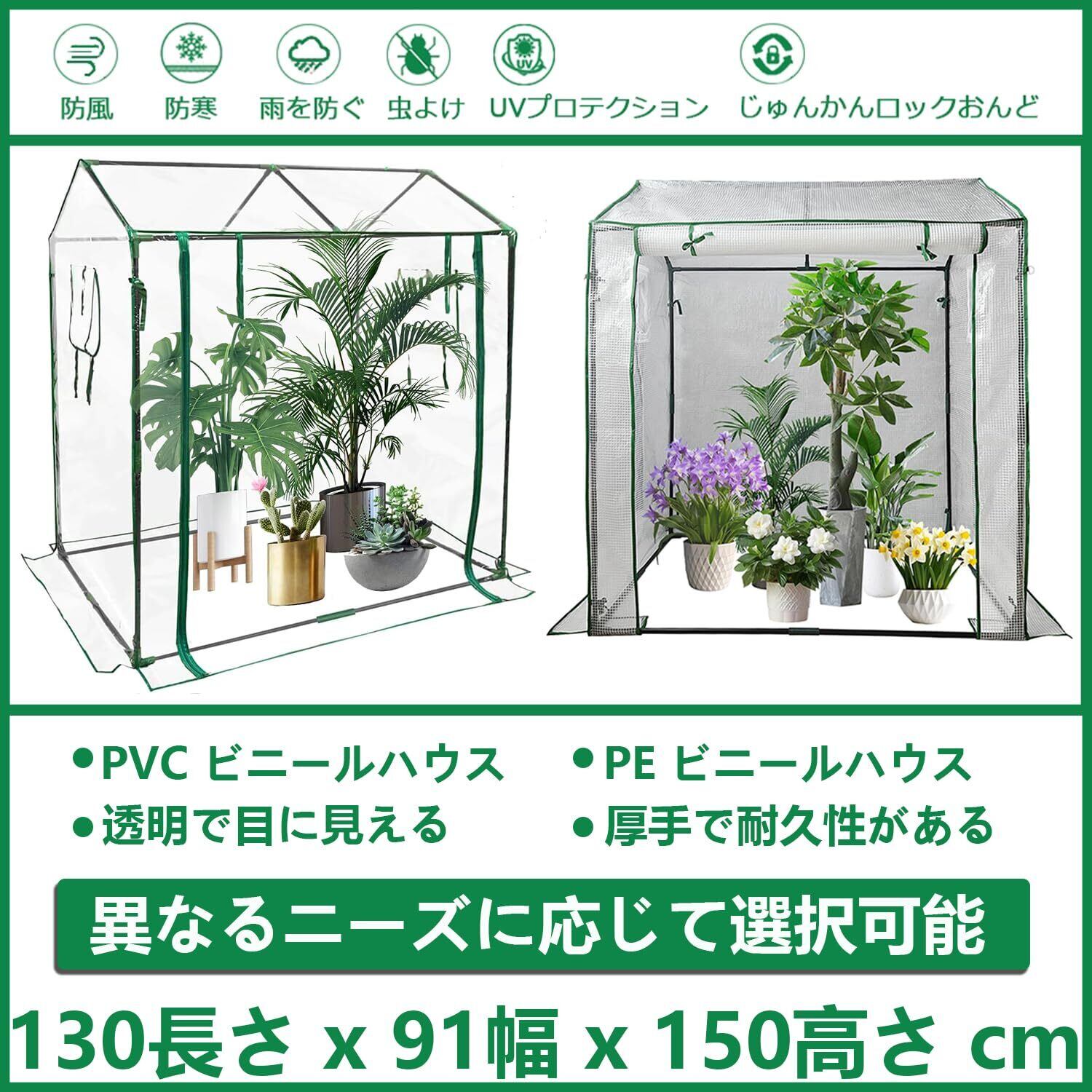 timiland 温室 ビニールハウス (鉄フレーム+ホワイトPEメッシュクロス) PEビニールハウス ガーデン温室 家庭用 ビニールハウス 植物 ビニール温室 大型温室 花園温室 植物の温室 温室テント 組立簡単 工具不要 防雨/防寒/防風対策 害虫/鳥防止 付日本語版インストール手順(130×91×150cm) | KSショップ