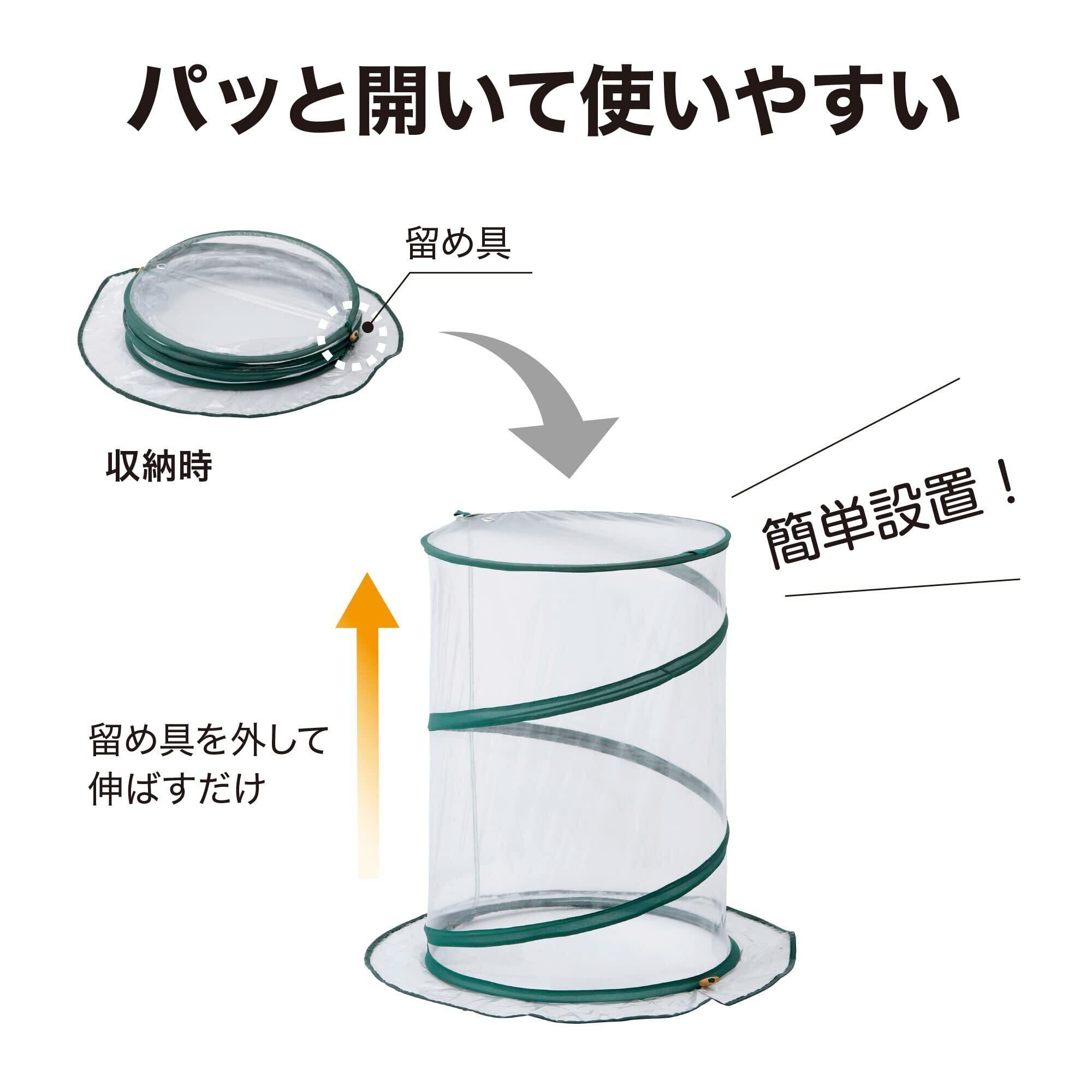 寒さや霜から大切な植物を守る。必要なときにパッと開いて簡単設置。設置も収納もしやすく、扱いやすい。