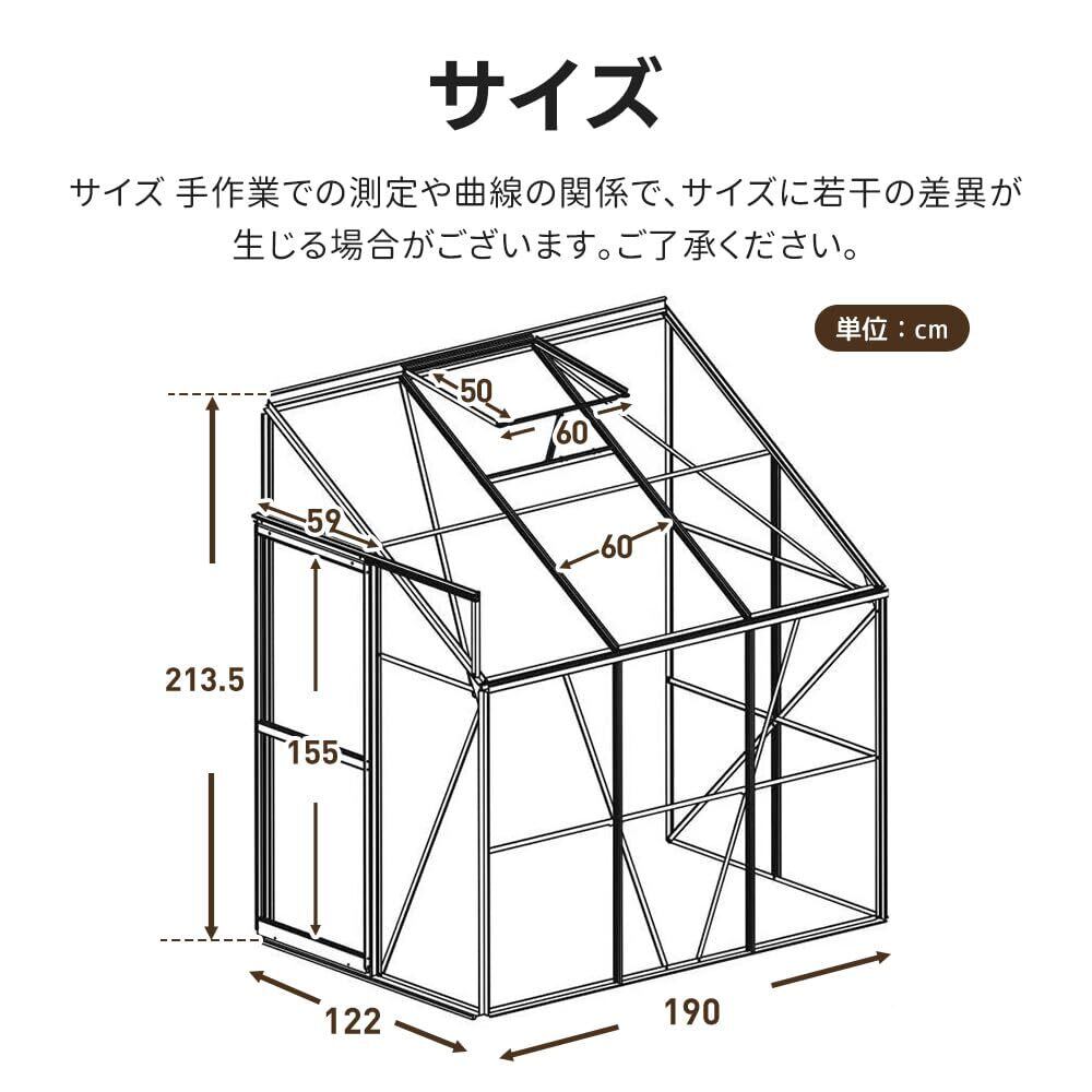 【商品サイズ】組立サイズ:190*122*213.5cm。◆梱包サイズ:170*65*14cm/・本体重量:19kg/・素材:アルミ、ポリカーボネート。