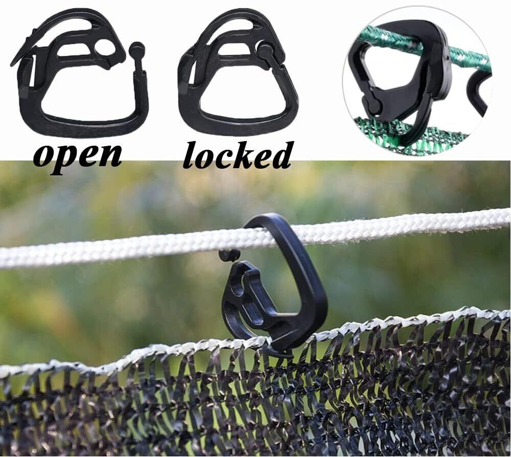 【高品質素材】日除けシェード固定用クリップはプラスチックで作られ、耐用年数が長く。ネットクリップ --- 取り外し可能なロックは取り付けと分解が簡単で、便利さをもたらします。メッシュを吊り下げるためのフック。