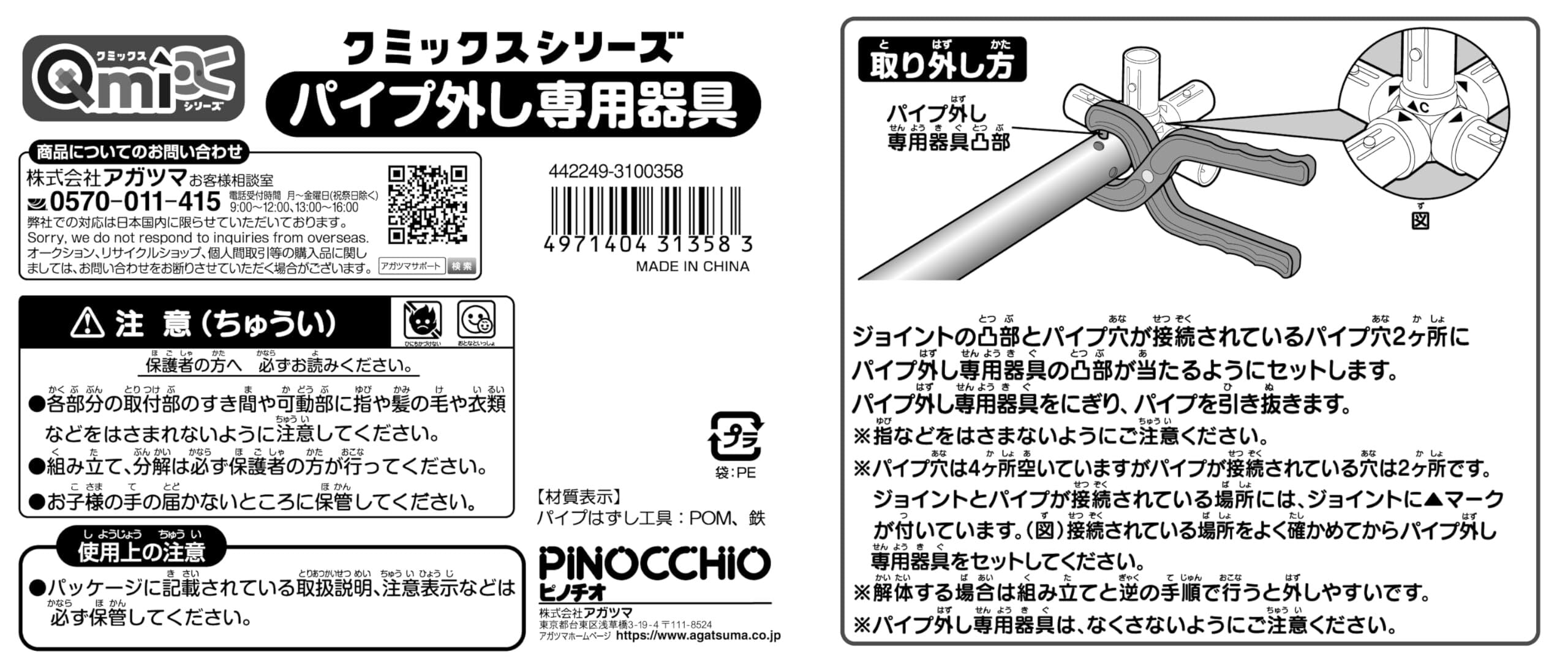 アガツマ(PINOCCHIO)の室内用遊具『Qmix(クミックス)シリーズ』の解体に使用するための専用器具です。