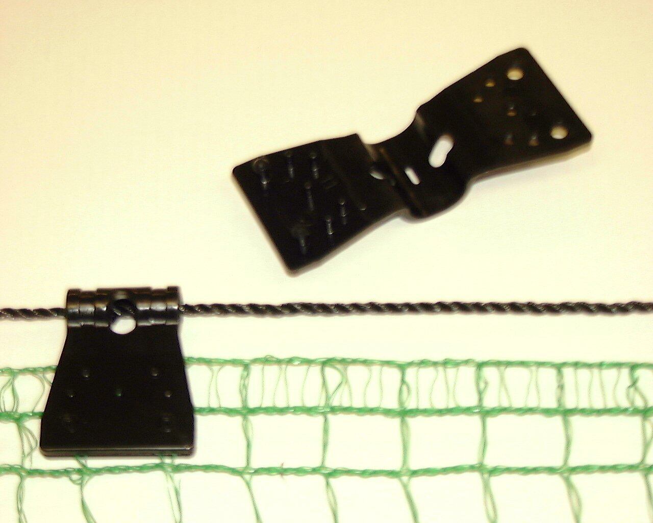 ・網目2mm以上のネットに取付け可能で、ロープは太さ4mm程度のものまで使用できる