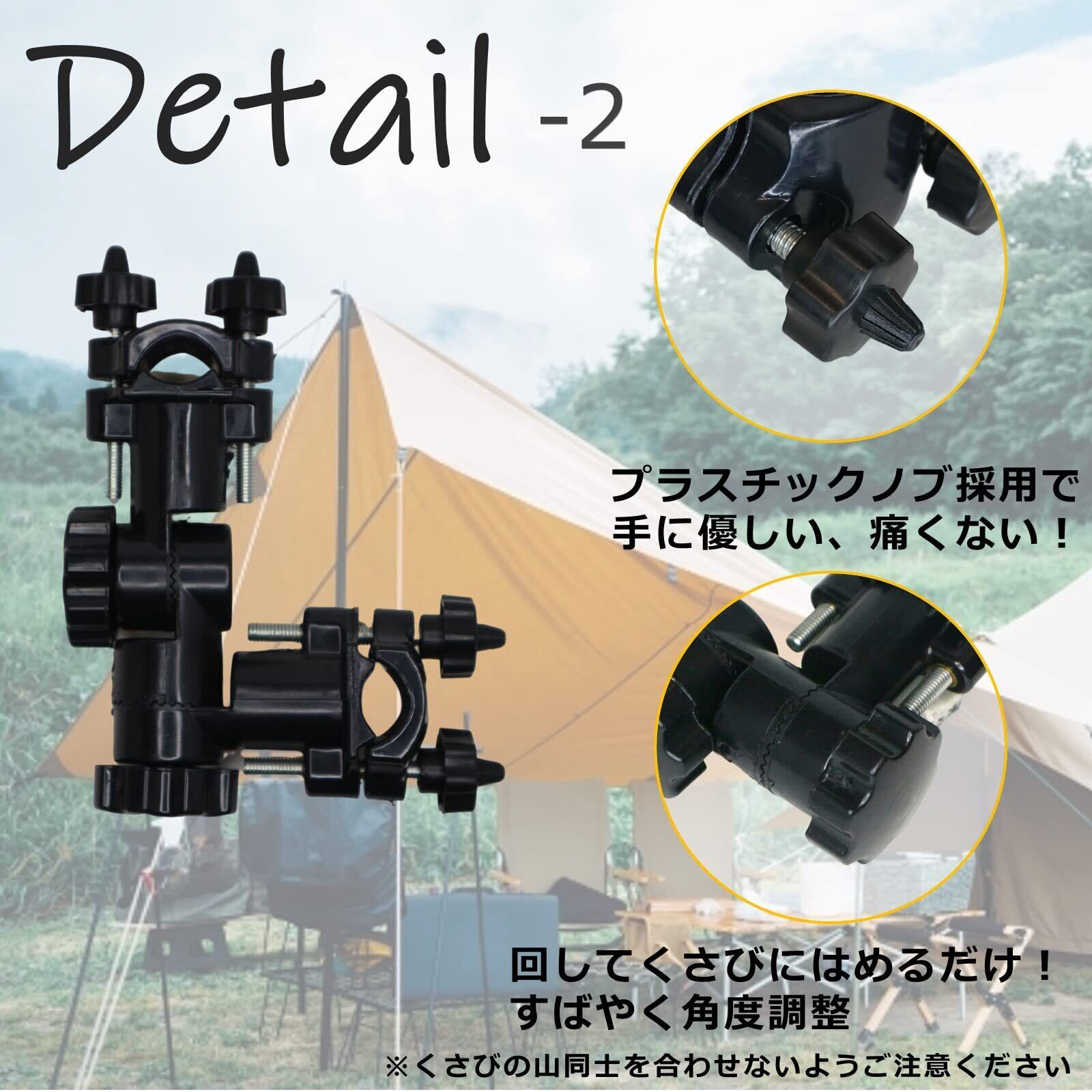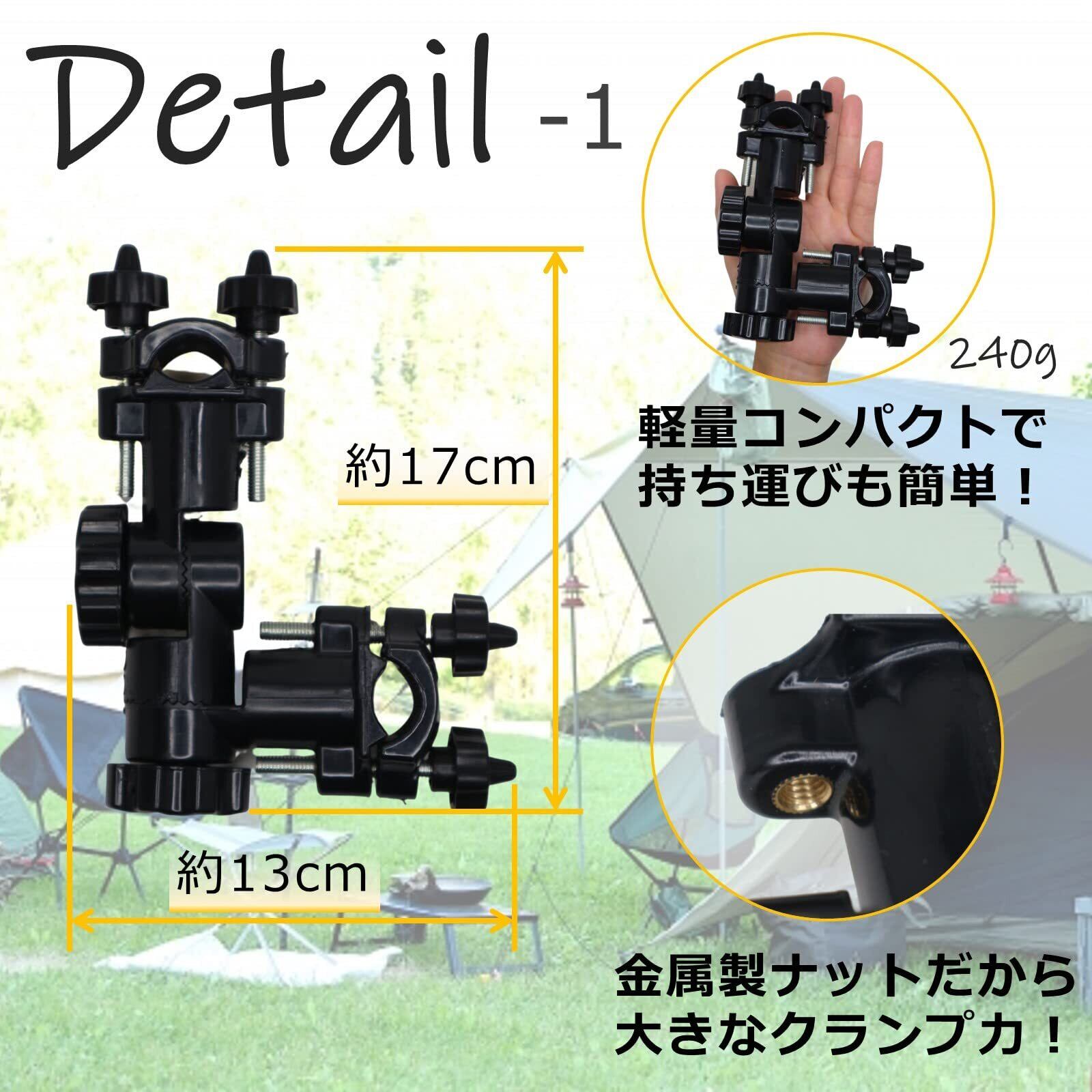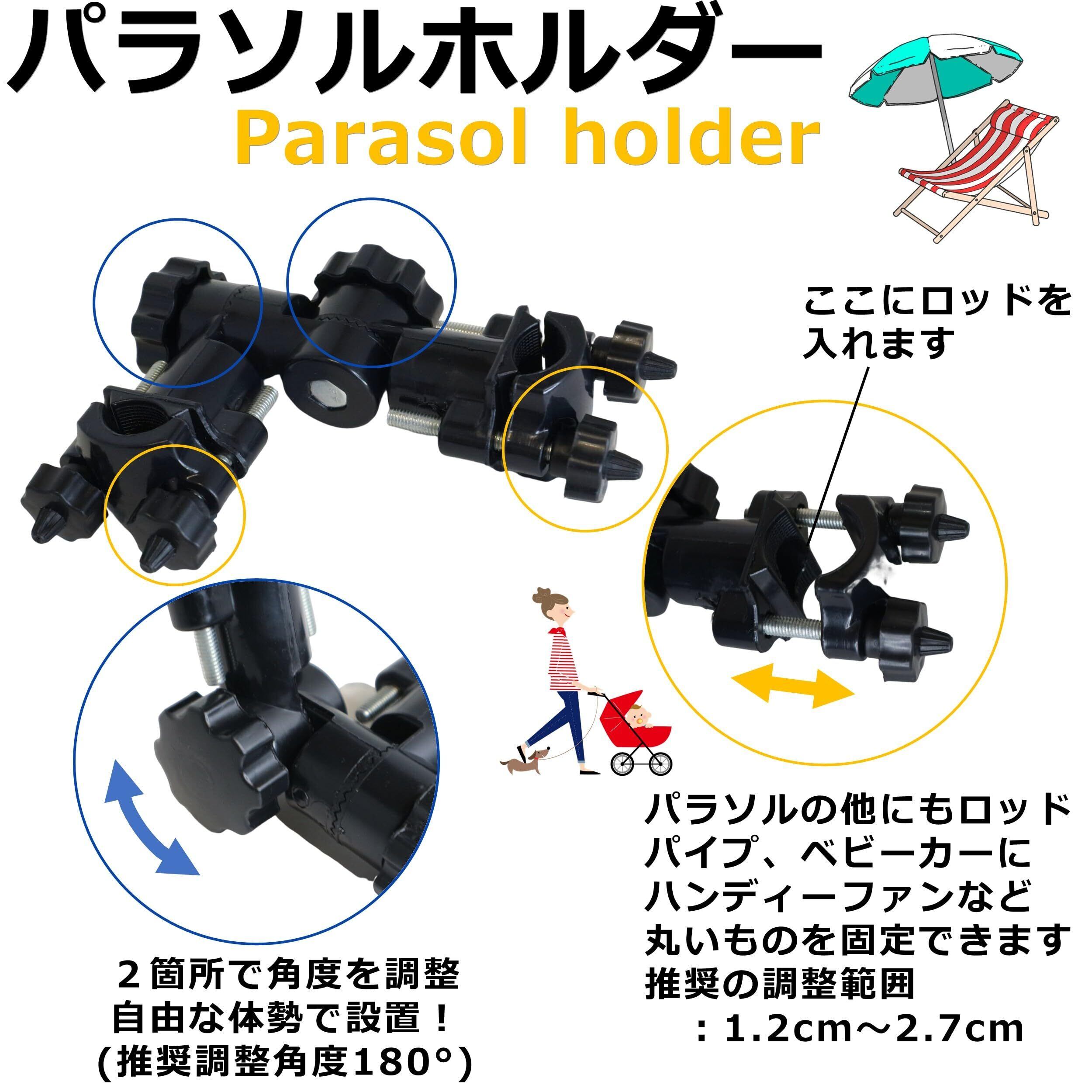折りたたみ椅子やベビーカー、支柱やスタンド、ポール、釣り台などのパイプにクランプ(挟み込んで)固定してパラソル、ハンディファン、ロッド、傘などの取付けに使えます!(形状、取付けサイズにご注意ください)