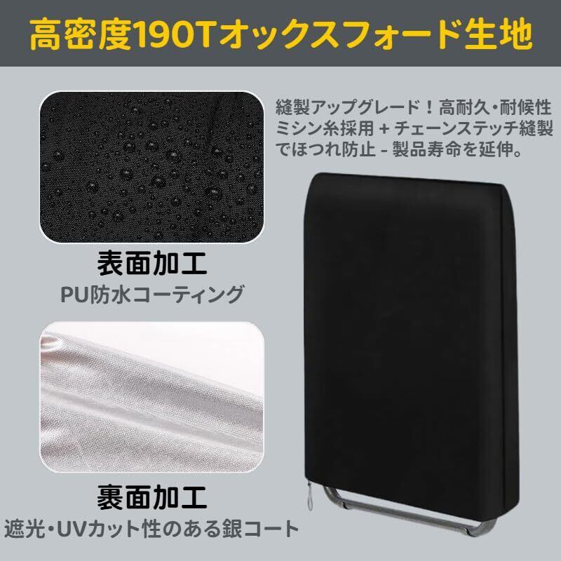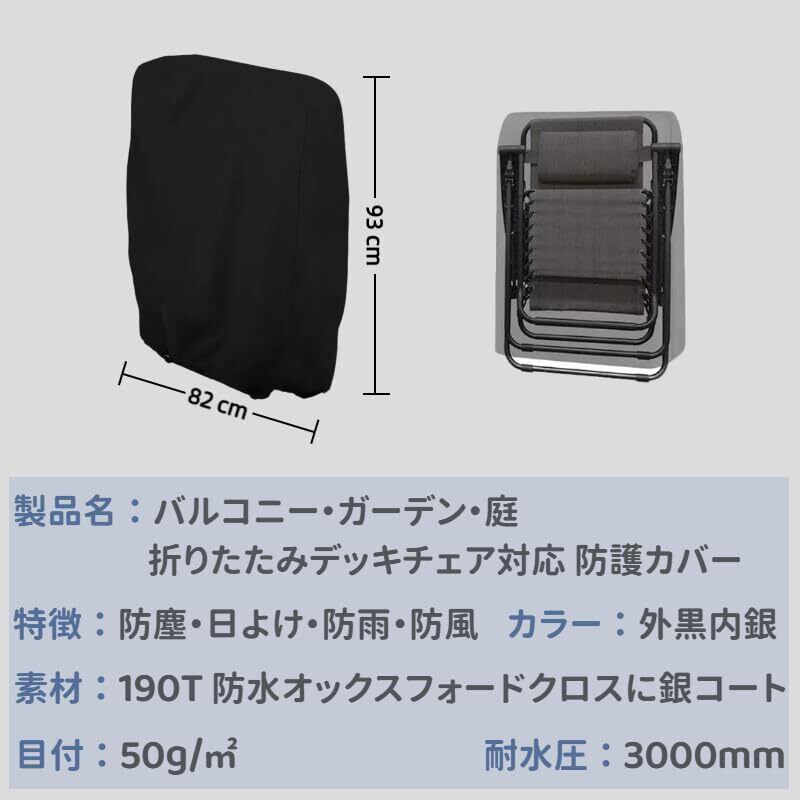 【2025年のNEWスタイル】折りたたみ椅子カバー 防水防塵防輻射紫外線 黄砂対策 耐強風 家具 カバー 屋外折りたたみ椅子に最適 (ブラック/82 x 93 cm)