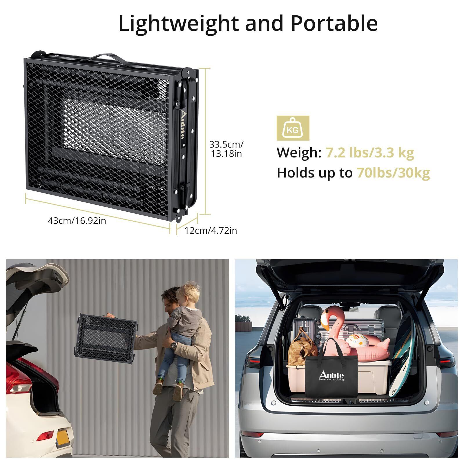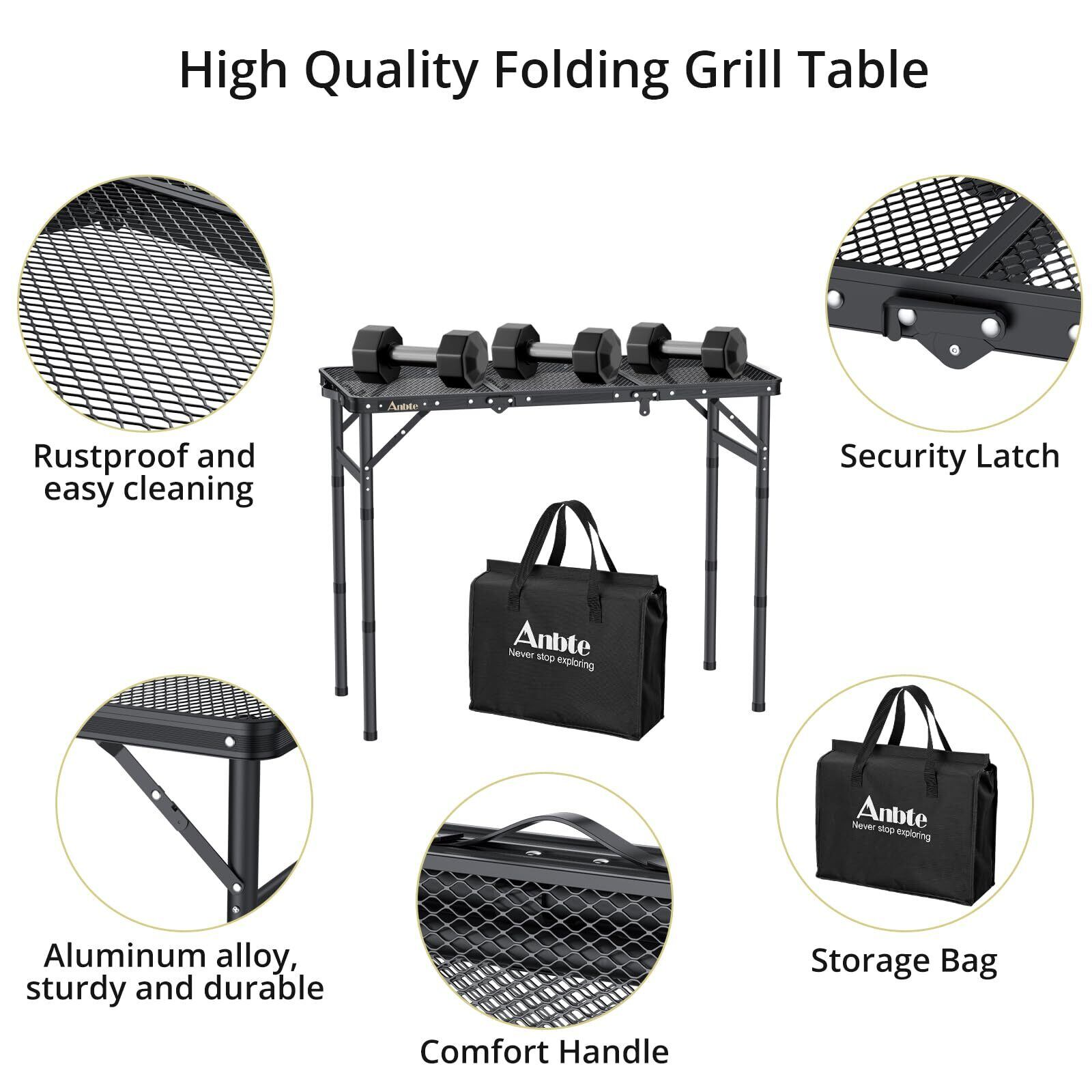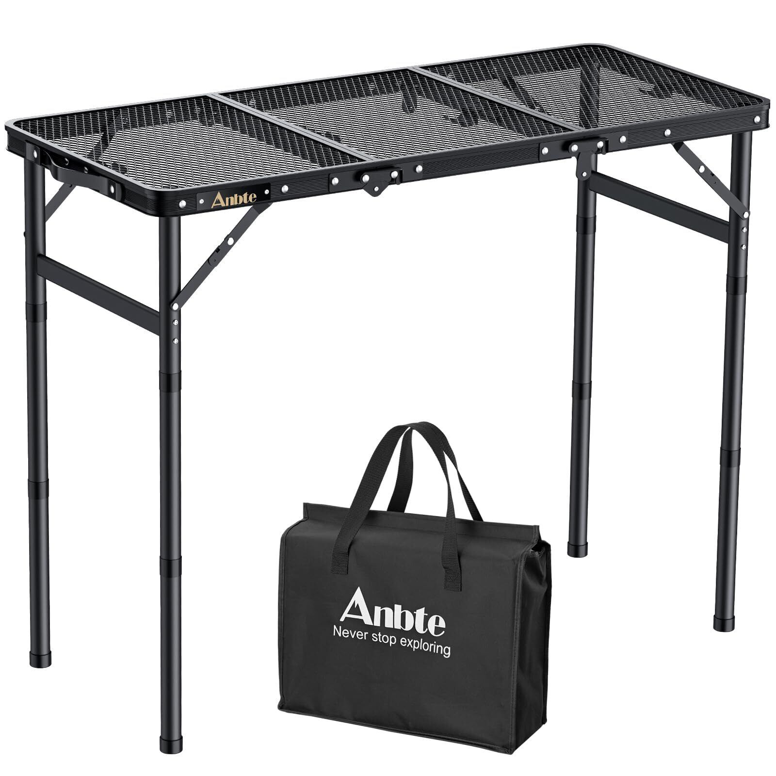 Anbte 折りたたみ式グリルテーブル 3フィート 三つ折りアルミニウム折りたたみテーブル 高さ調節可能 最大27.5インチ 鉄製メッシュデスクトップ付き 軽量 ポータブルハンドル アウトドアクッキング BBQ ピクニック用 (ブラック)