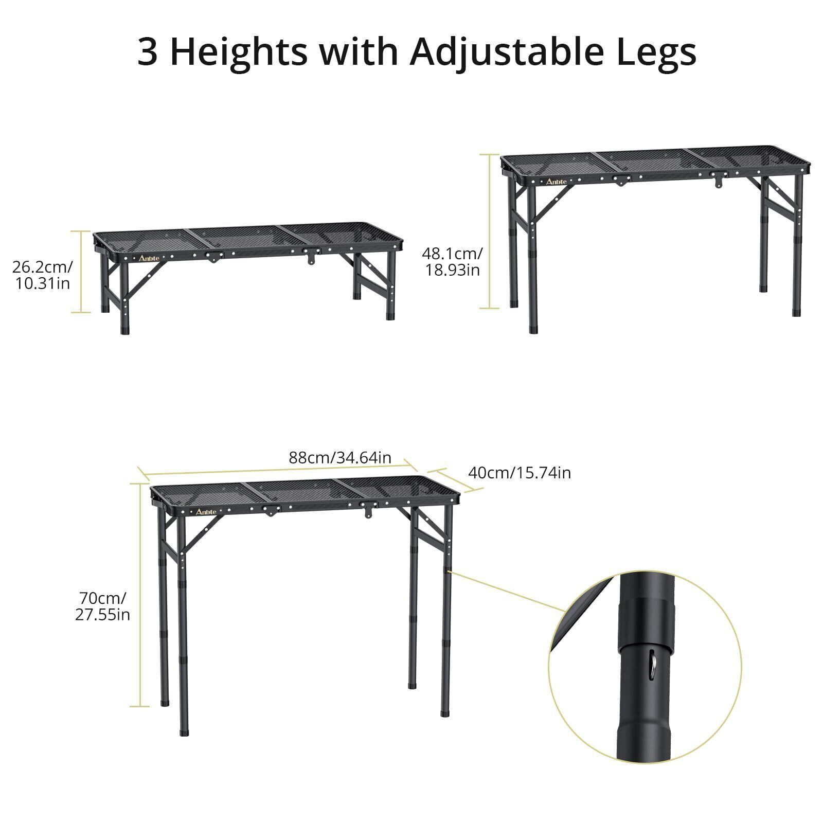 Anbte 折りたたみ式グリルテーブル 3フィート 三つ折りアルミニウム折りたたみテーブル 高さ調節可能 最大27.5インチ 鉄製メッシュデスクトップ付き 軽量 ポータブルハンドル アウトドアクッキング BBQ ピクニック用 (ブラック) | KSショップ