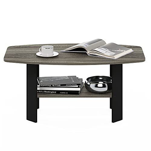 フリノ(Furinno) シンプルデザインコーヒーテーブル フレンチオークグレー/ブラック 幅90×奥行55×高さ40cm 【日本正規輸入品】