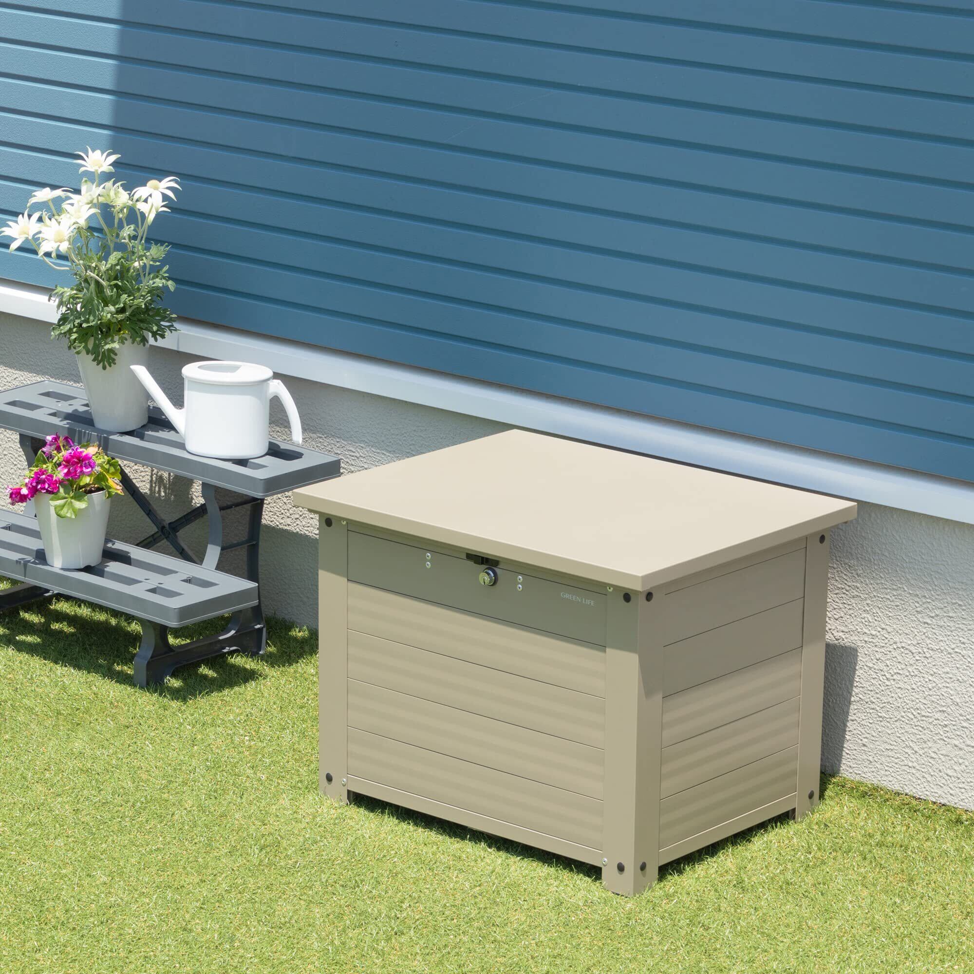 グリーンライフ 宅配ボックス ベンチ型 ベンチ ストッカー 収納 収納ボックス 収納ベンチ 玄関 縁台 物置 倉庫 さびにくいアルミ製 大容量 置き配 戸建て用 個人宅 屋外 不在受取 防犯対策 盗難防止 鍵付き Receibo(レシーボ)チタングレー TRA-54(TGY) | KSショップ