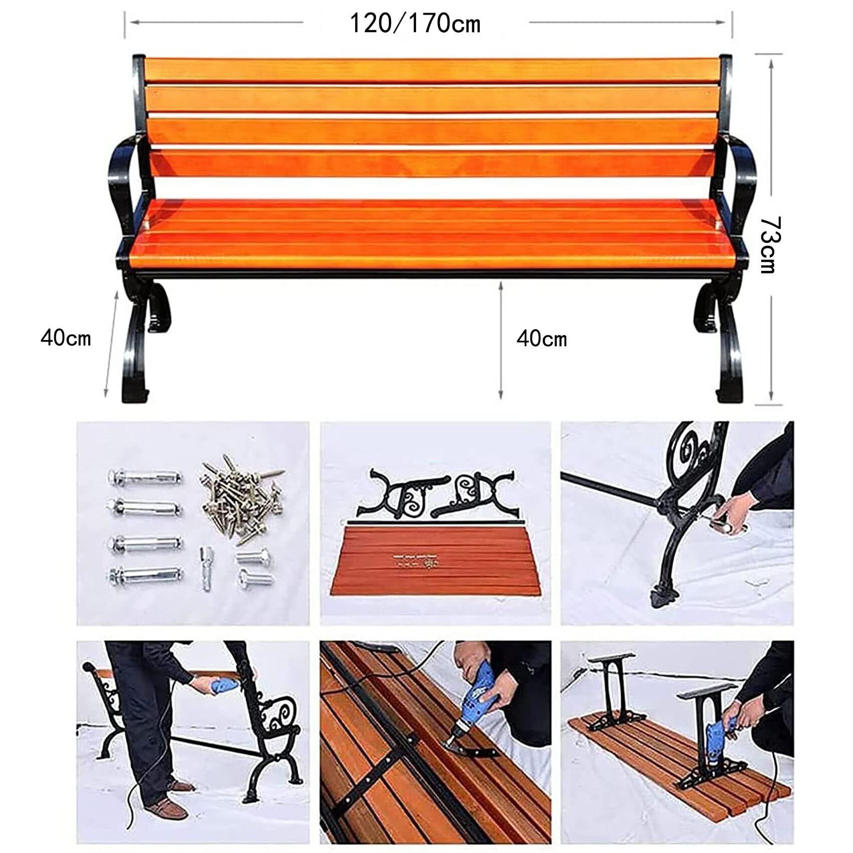ガーデンベンチ 屋外 耐荷重約400kg 中庭や庭園に適したアームレストと背もたれ付き マンションのベランダ に最適 (Size : 170CM)