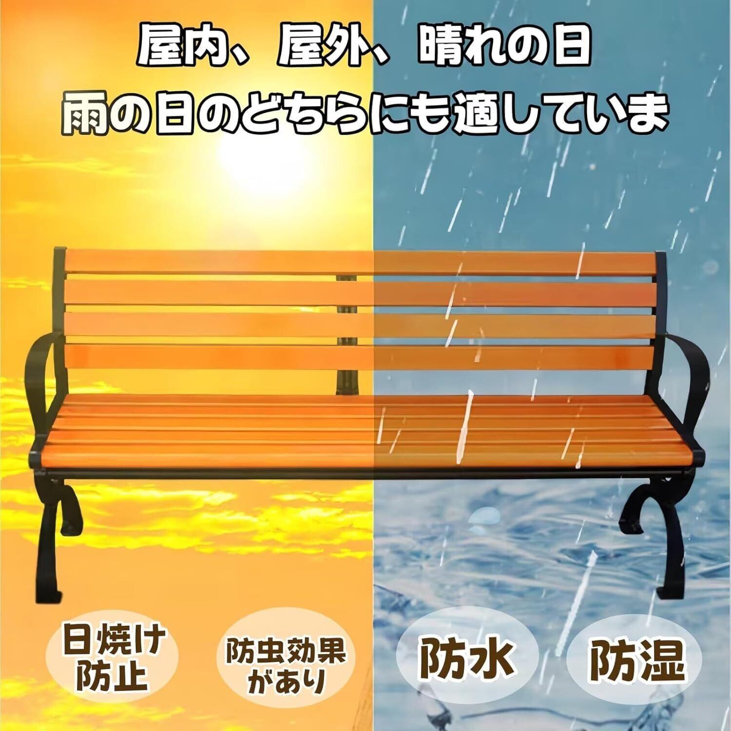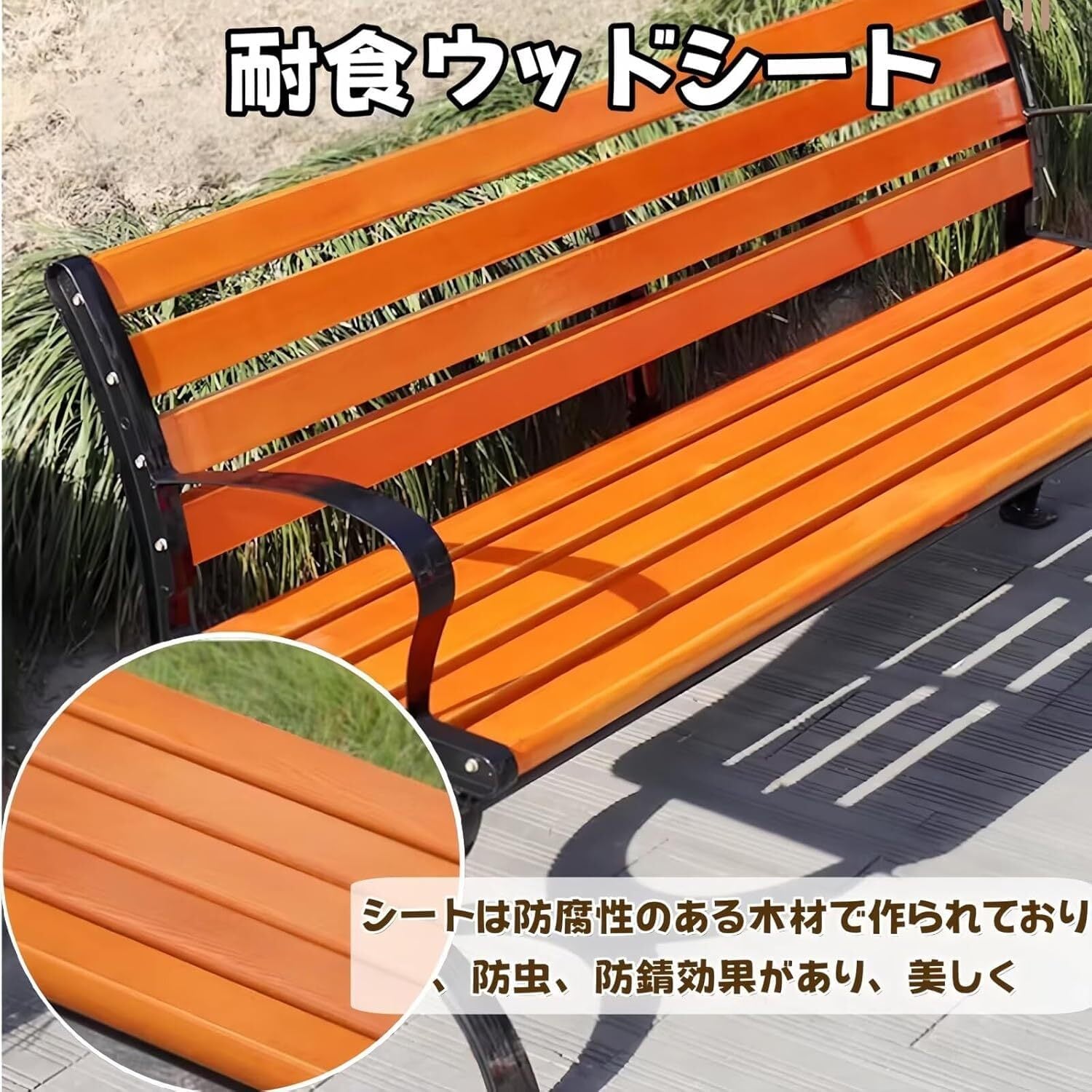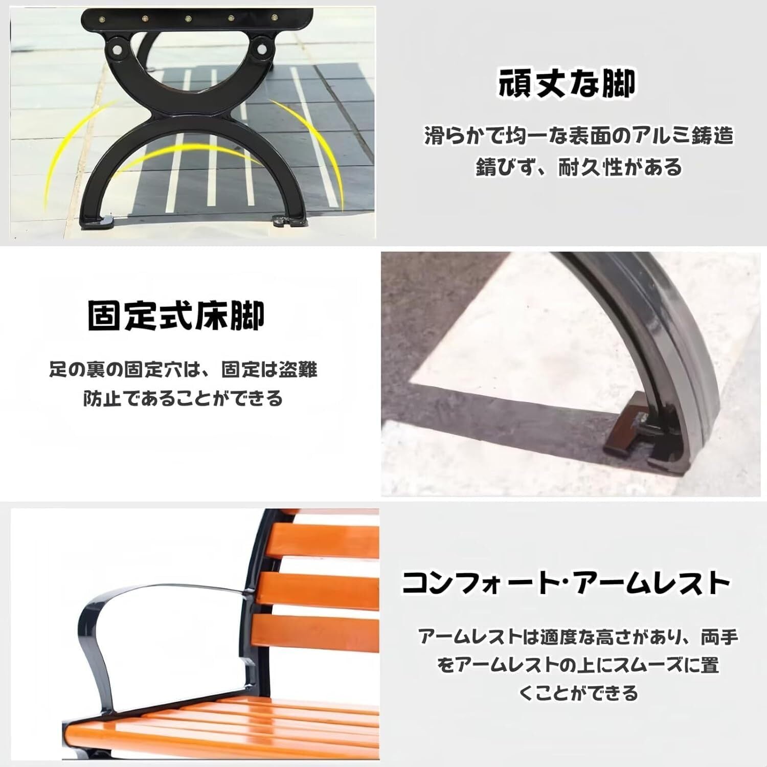 【高品質のベンチ】このガーデンベンチは耐食性のある木材でできており、防水・防湿・防虫効果があり、虫の嫌がらせをなくし、健康的で環境に優しい。鋳造アルミニウムフレーム、十分な強度があり、絶妙なトップコートで処理され、錆びず、耐摩耗性があり、あらゆる種類の天候に適しています。