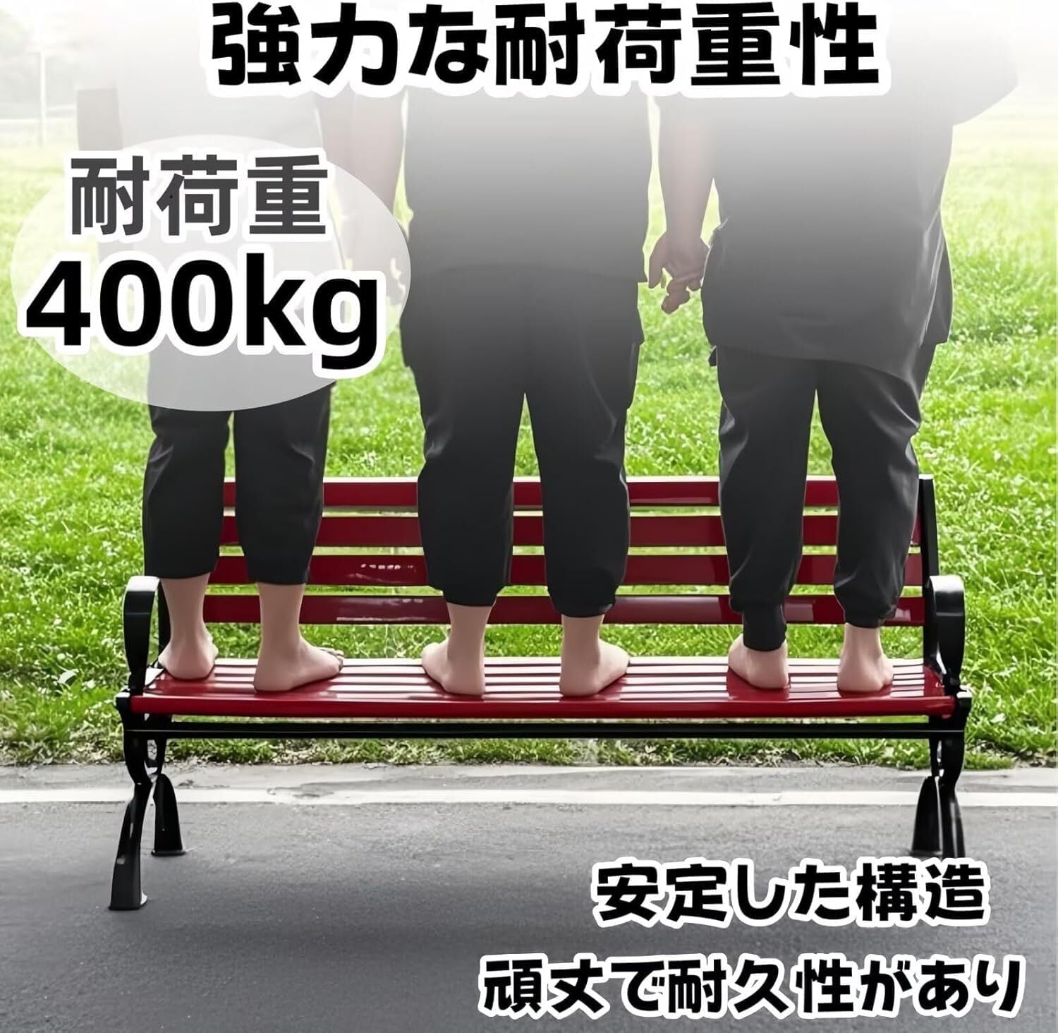 【安全な屋外ベンチ】頑丈で耐久性があり、安定した構造、400kgの負荷が可能で、しっかりした土台は、全体的な耐荷重能力を効果的に改善します。エッジとコーナーは滑らかに磨かれ、服に損傷を与えません、指を傷つけません。リラックスして安全に使用することができます。