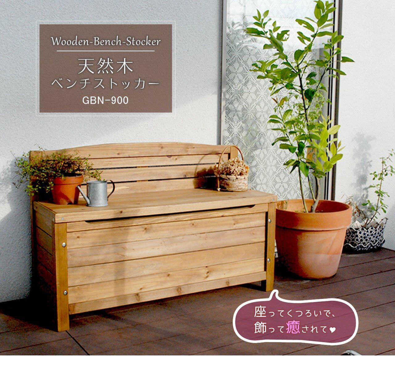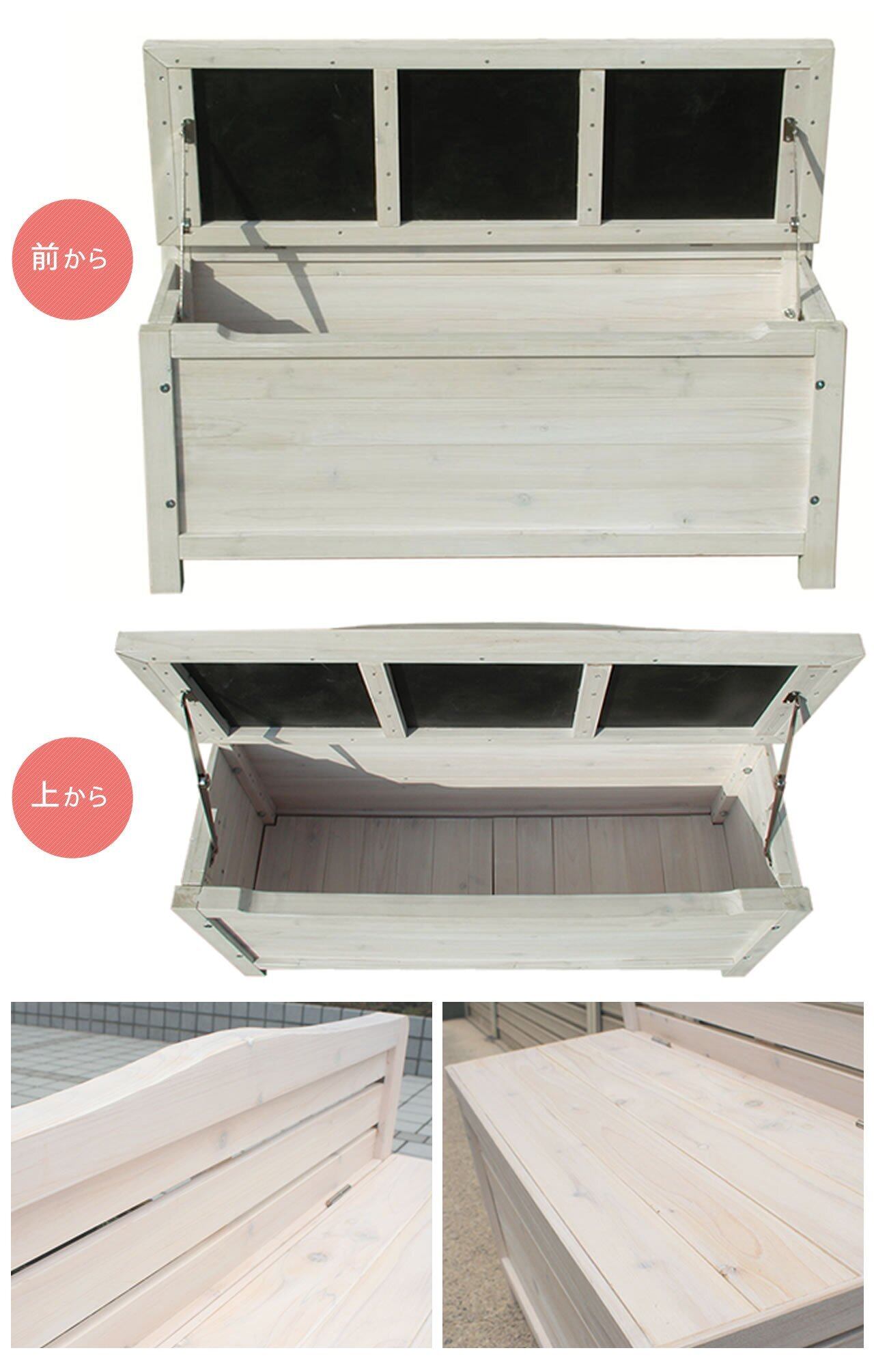 ガーデンガーデン 天然木製ベンチストッカー 幅90cm×奥行33cm×高さ60cm ウォッシュホワイト GBN-900WH