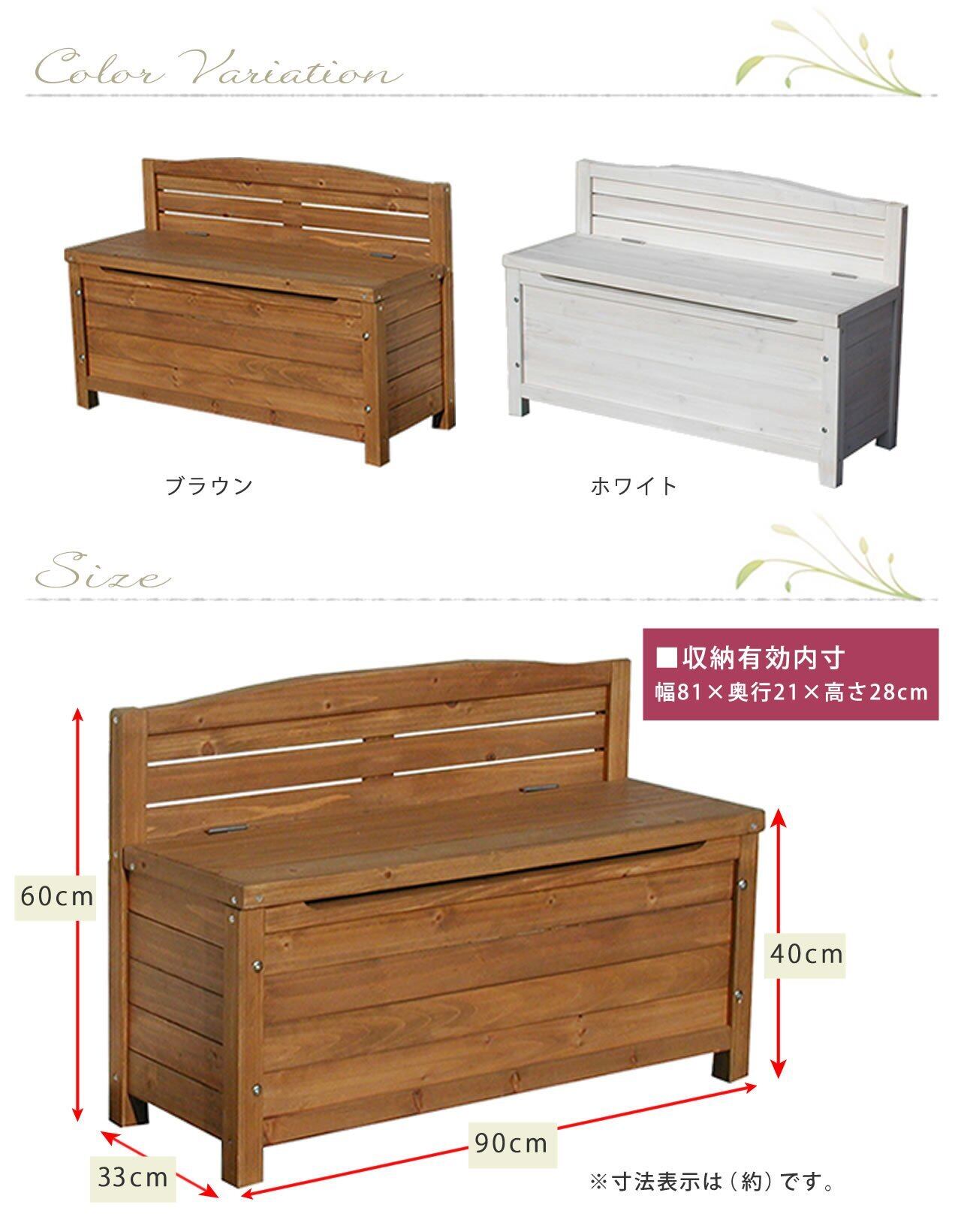 サイズ: 幅90cm×奥行33cm×高さ60cm (収納部内寸) 幅81cm×奥行21cm×高さ28cm (座面高) 40cm ※収納部は防水ではありません