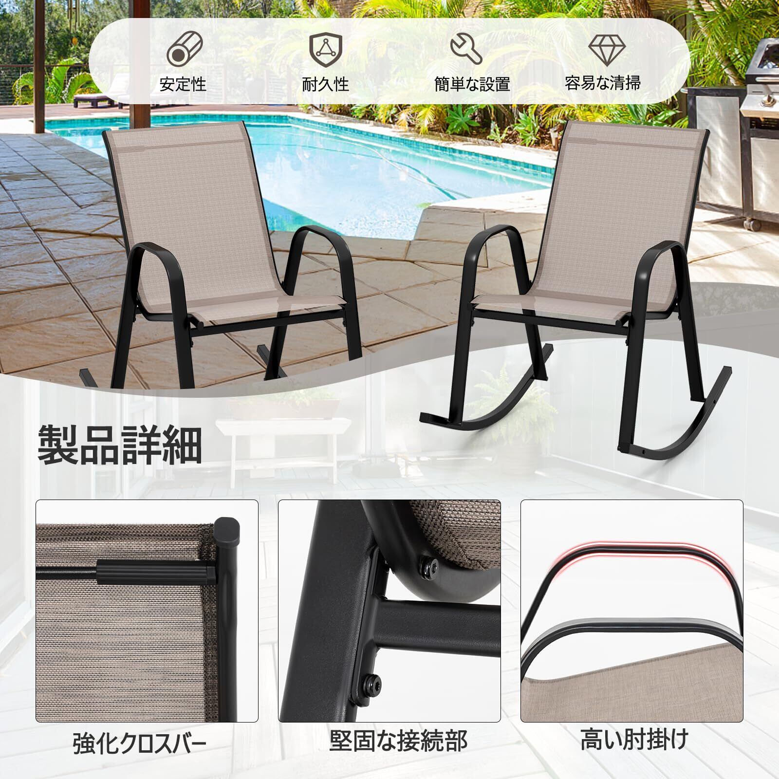 TANGKULA ガーデンチェア 2脚セット 肘掛け 耐荷重150KG ラウンジチェア パティオロッキングチェア 屋外用 揺れる椅子 快適な座り心地 通気性 耐久性 安定性 滑り止め 組み立て簡単