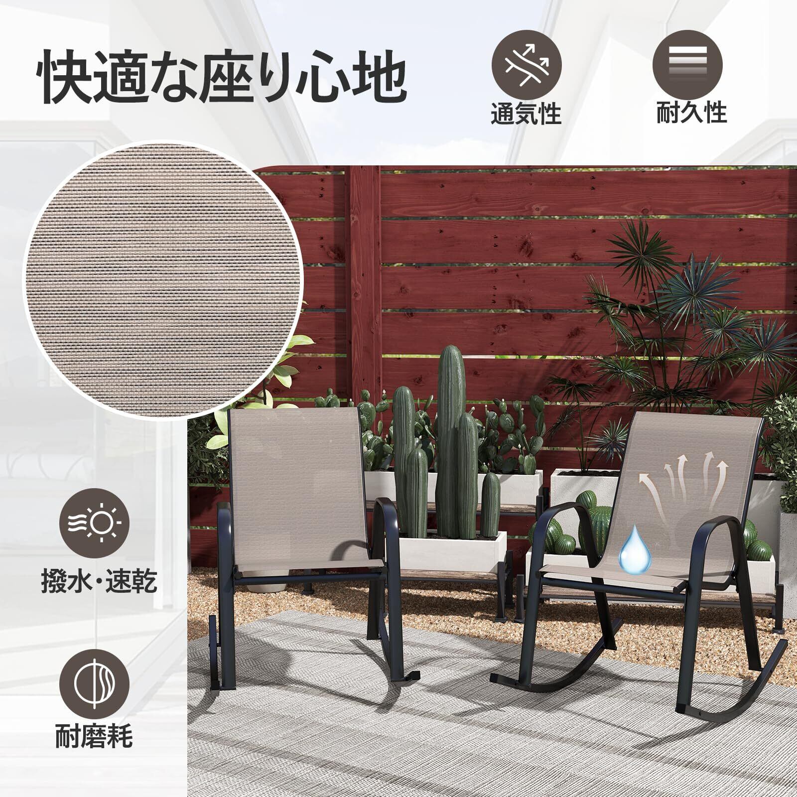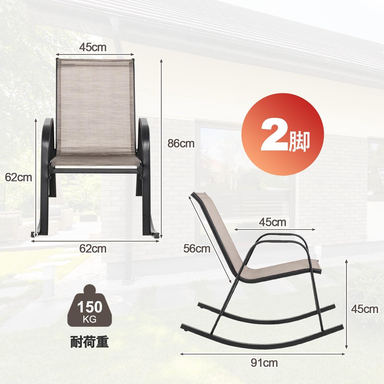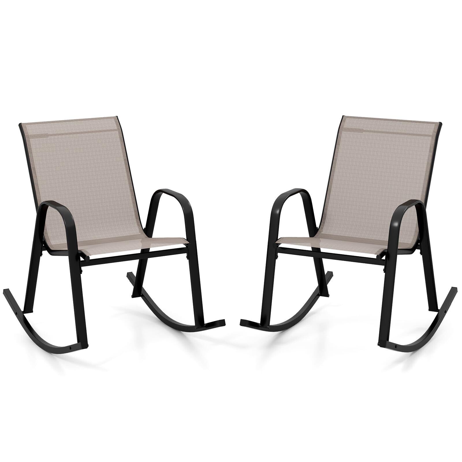 TANGKULA ガーデンチェア 2脚セット 肘掛け 耐荷重150kg ラウンジチェア パティオロッキングチェア 屋外用 揺れる椅子 快適な座り心地 通気性 耐久性 安定性 滑り止め 組み立て簡単 (ブラウン)