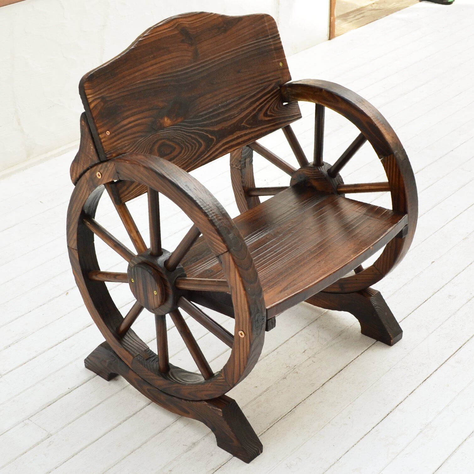 ガーデンガーデン ウッドホイール風車輪付木製ベンチ 幅65cm×奥行58.5cm×高さ83cm 松/杉天然木 焼仕上げ SS-WB-650-DBR