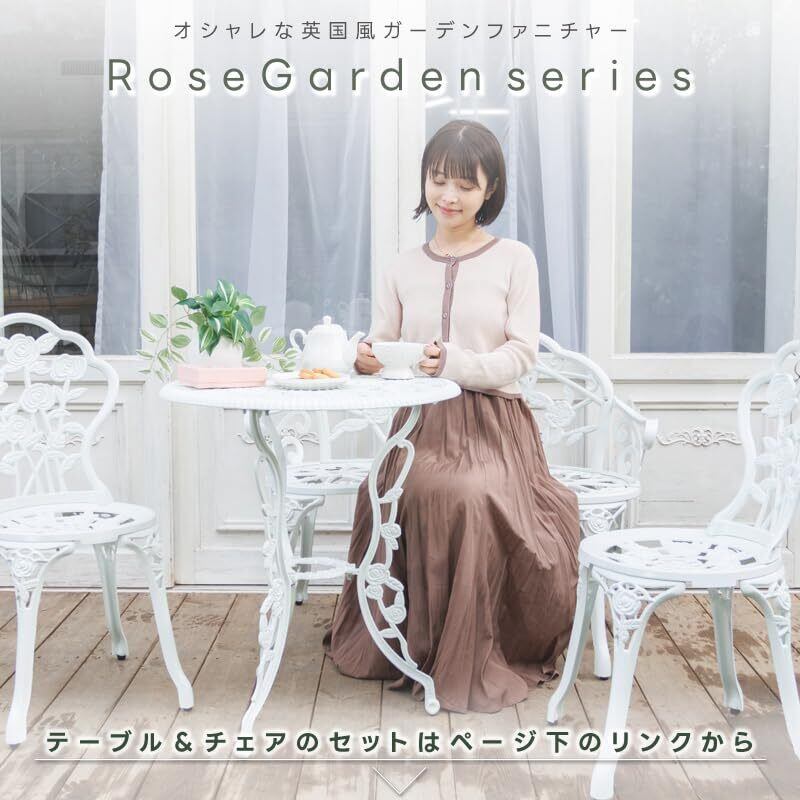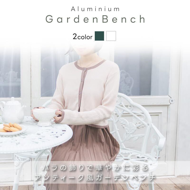 ローズ風デザインのアルミ製ガーデンベンチです。お庭やベランダに置くだけでヨーロッパ風の雰囲気を演出することができます。別売りのテーブルとベンチと併せてお使いいただくことでより一体感のあるお庭のデザインができます。