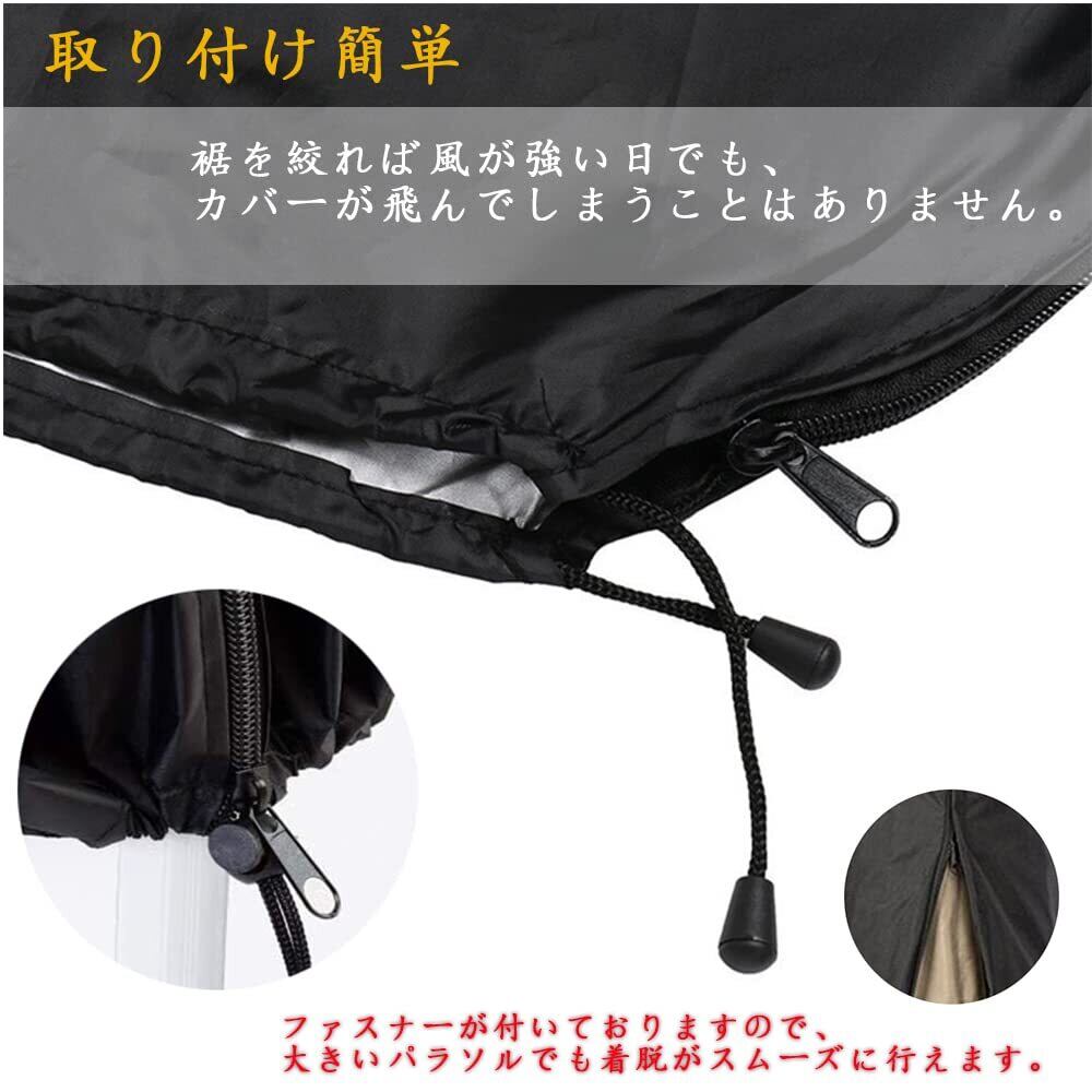 【上質な防水防風素材】:高品質の210D撥水オックスフォード布生地を使用しております。このカバーは汚れ、雨、太陽と雪からパラソルを保護することができます。風が強い日でも大丈夫です。裾を絞れば問題ありません。軽く、通気性よく、縮まなく、変色しなく、長持ちします。