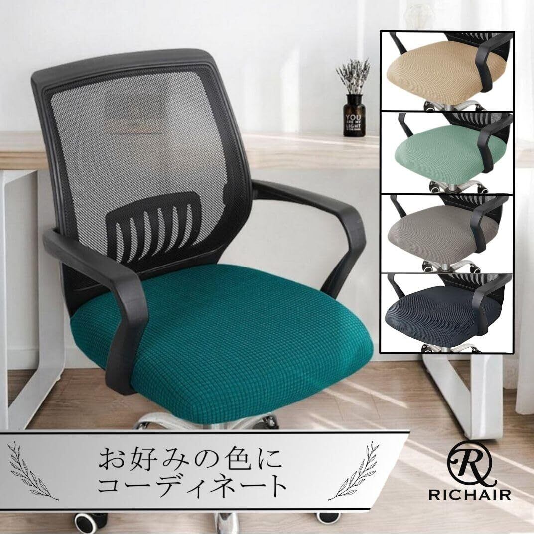 RICHAR 椅子カバー 座面カバー チェアカバー ストレッチ チェアシート 洗濯可能 (ブラック)