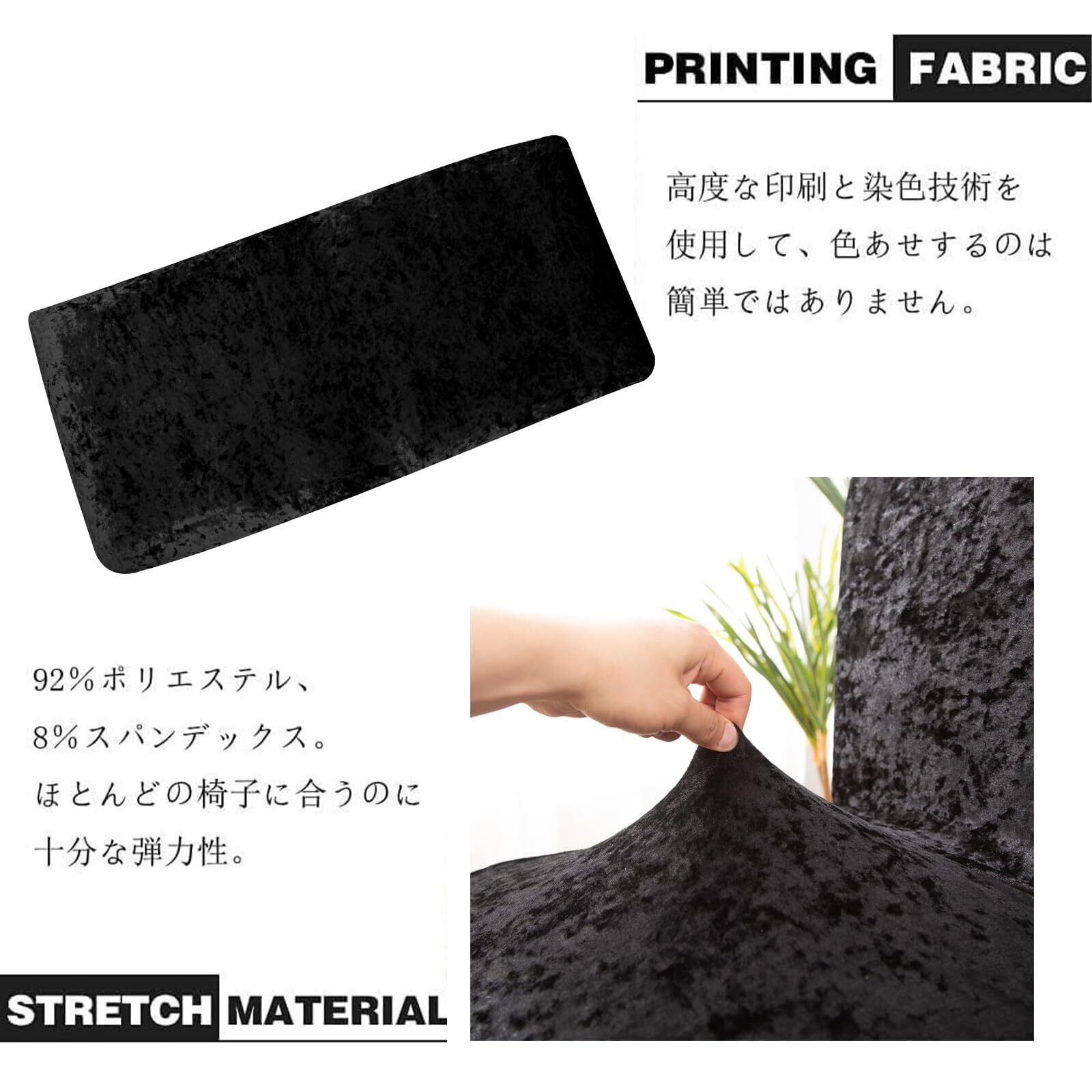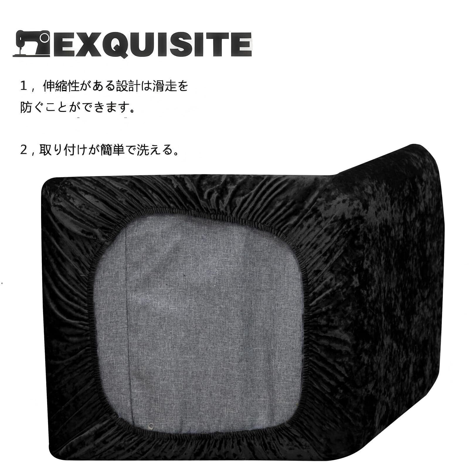 座椅子カバー フルカバー 高光沢 映える ベロア チェア生地 シンプル無地 洗濯可能 取り外し可能 ポリエステル生地伸縮椅子カバー 肘掛なし用 オールシーズン快適 (ブラック)