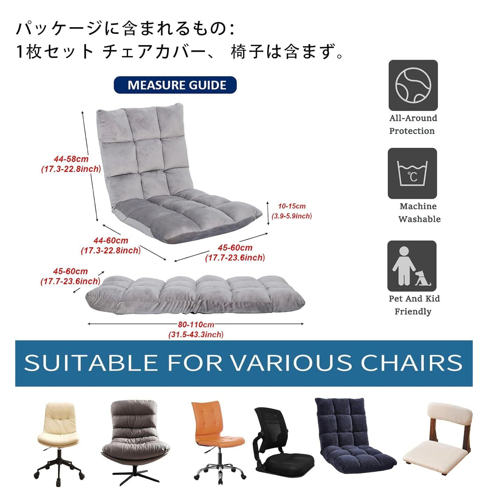 【座椅子カバー 1枚セット】購入する前に、椅子の背もたれの幅と高さを測定できます。推奨椅子サイズ:バックの高さ44-58CM、バックの幅45-60CM、シートの幅45-60CM、シートの長さ44-60CM、厚さ10-15CM。写真を参照してください。パッケージに含まれるもの:1枚セット チェアカバー、 椅子は含まず。