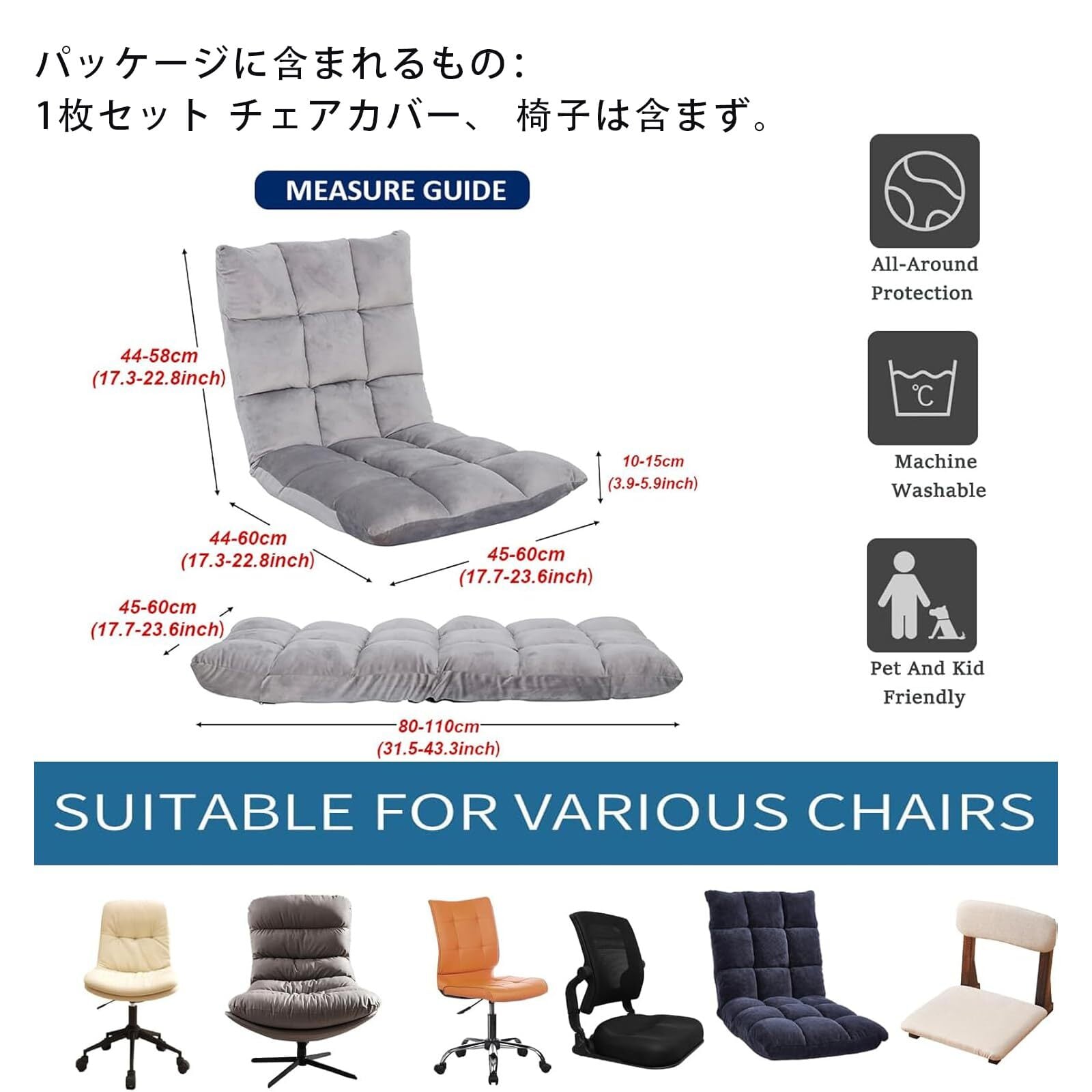 【優れた生地】ポリエステルスパンデックス。 とても柔らかい素材を使用しており、快適でしわになりにくく、アイロン不要。座椅子カバーは、複数の色とスタイルからお選びいただけます。伸縮性のある椅子のシートカバーは 、座椅子、キフロアチェア、正座椅子に最適です。 半分のコストで椅子を改造します。古い、破損した、または醜い椅子の外観を新しくし、椅子を引っかき傷、こぼれ、事故から保護します。特に、サラリーマンや学生、またはペットの家族に最適です。