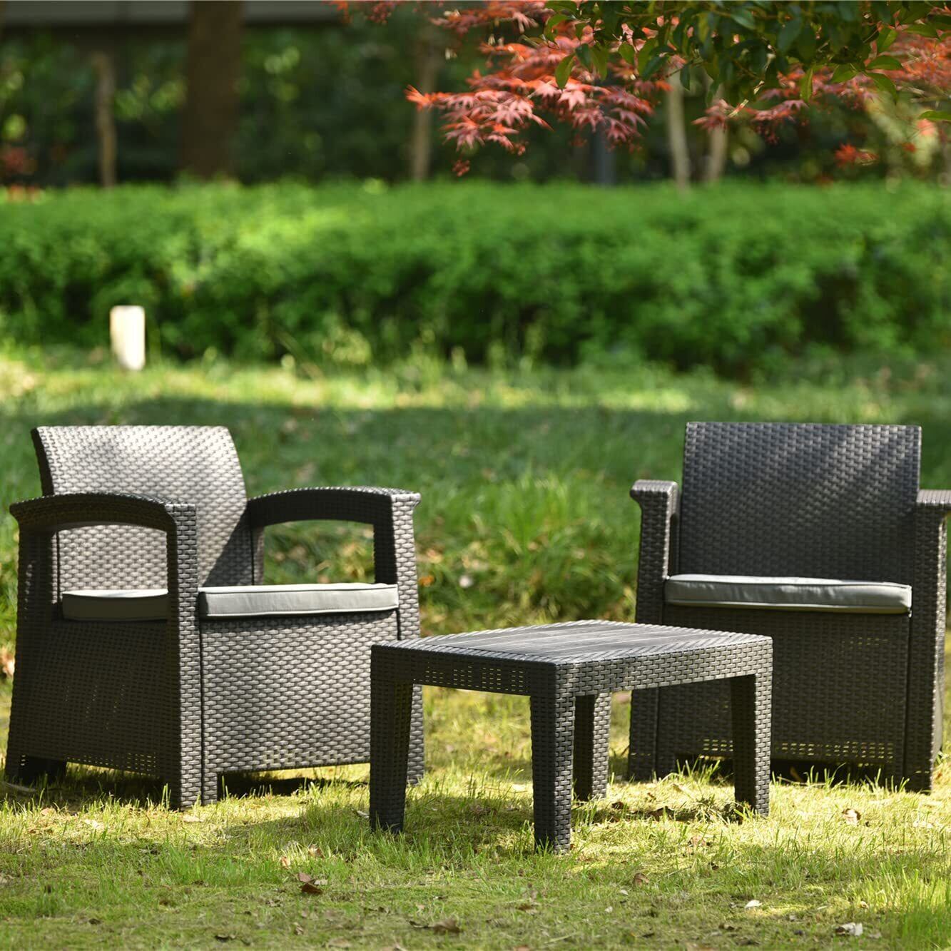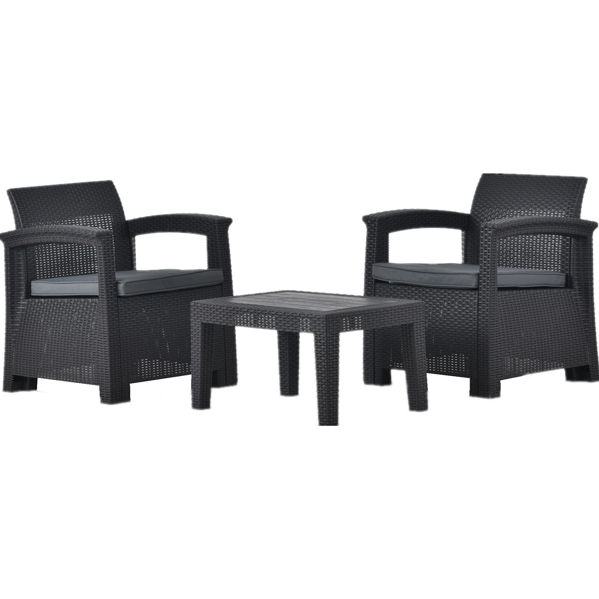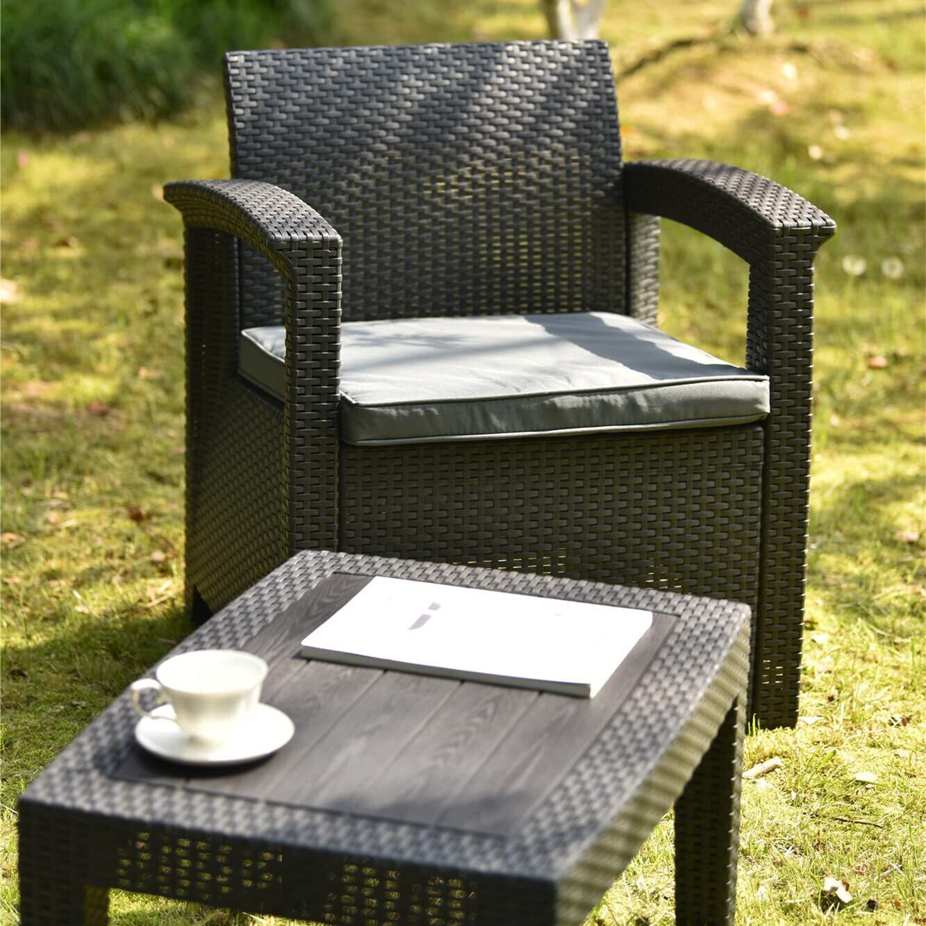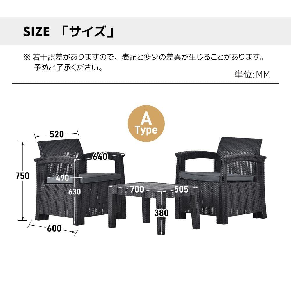 OSJ ガーデンファニチャー 3点 ガーデンテーブル テーブルセット ラタン調 樹脂 ホテル カフェ ベランダ テラス 高級 ソファ ガーデニング 軽量 ガーデンファニチャー 屋外家具 組立簡単(グレー) | KSショップ