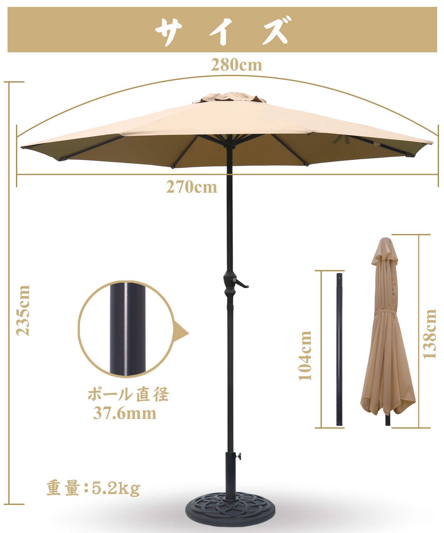 大型サイズ:大型サイズの270cmタイプは、国内最大級の大きさ!広範囲をガードすることができるので、友達とのバーベーキューや会食など大人数で過ごす方にお勧めです