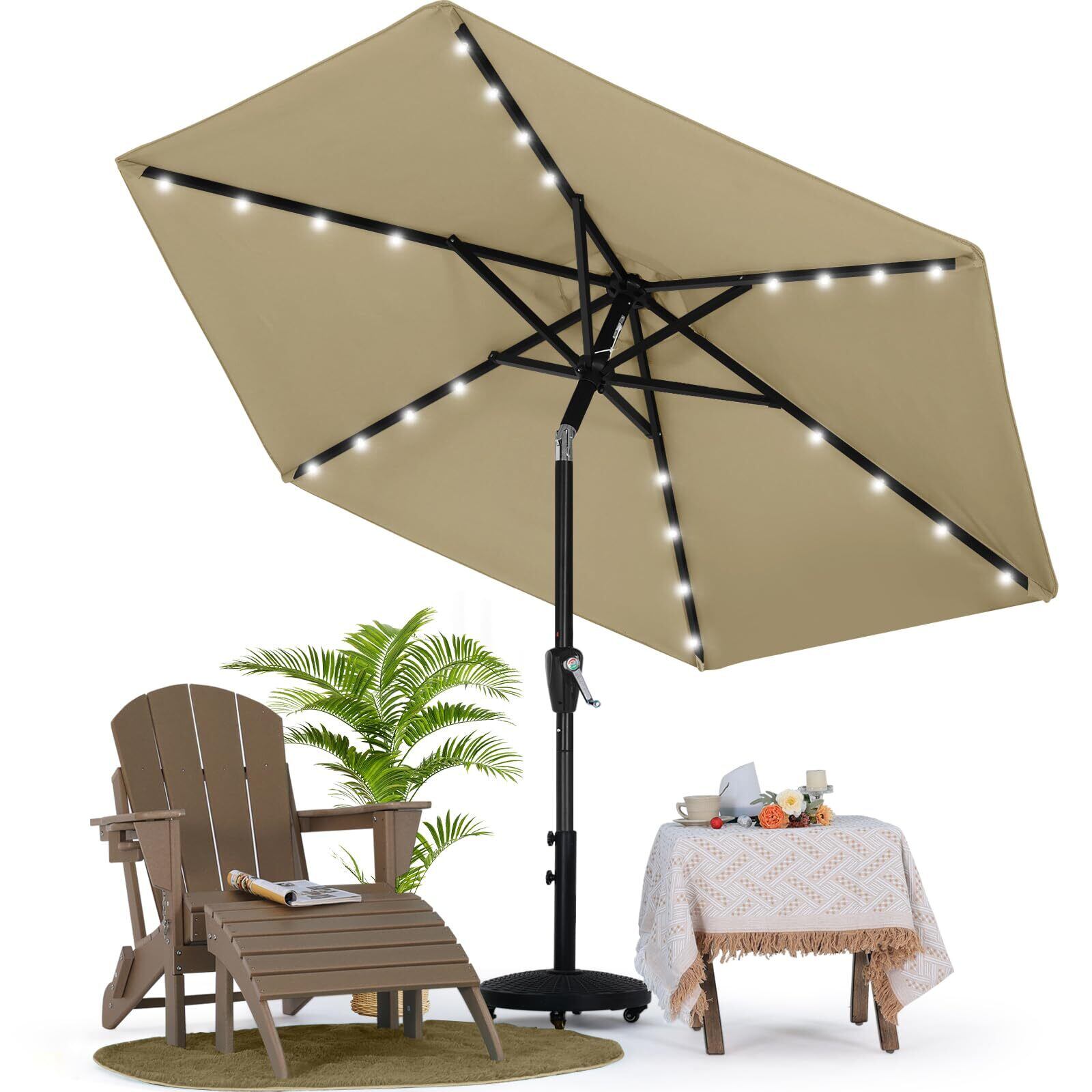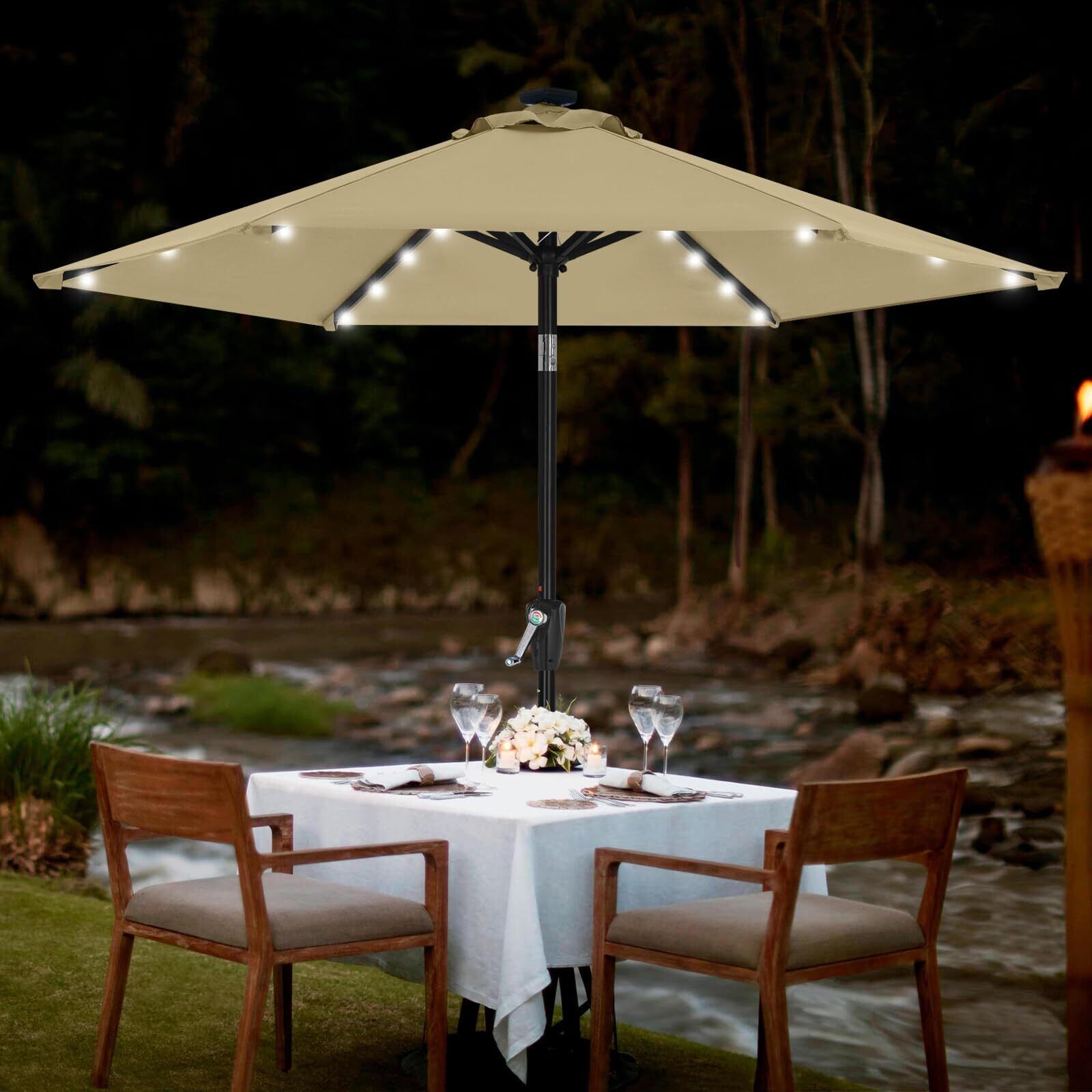 マスターキャノピー(MASTERCANOPY) LEDライト付き ガーデンパラソル 角度調節可能 ハンドル回転式 日除け 撥水 庭 アウトドア (230cm, カーキ)