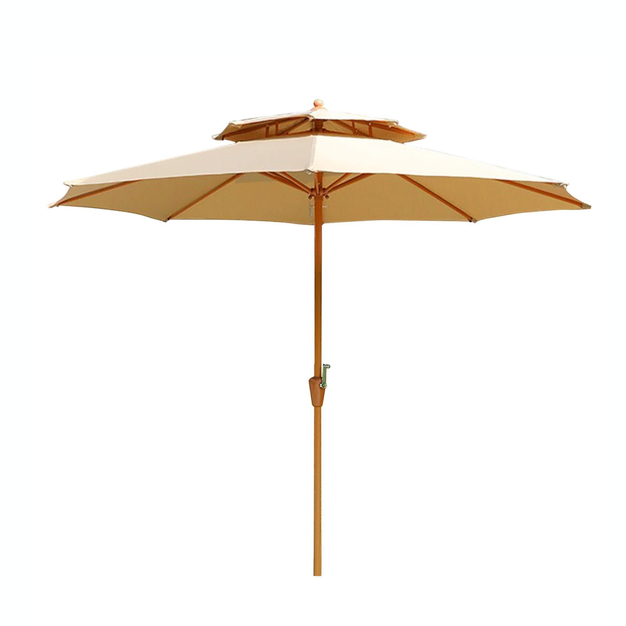 ガーデンパラソル パラソル 大型 ダブルトップ 風に強い アウトド (約)直径220/270cm×高さ250cm ハンドル開閉 UVカット 撥水加工 ビーチパラソル 庭 テラス ベランダ オープンカフェ ガーデン (カーキ, 220cm)